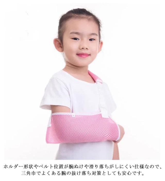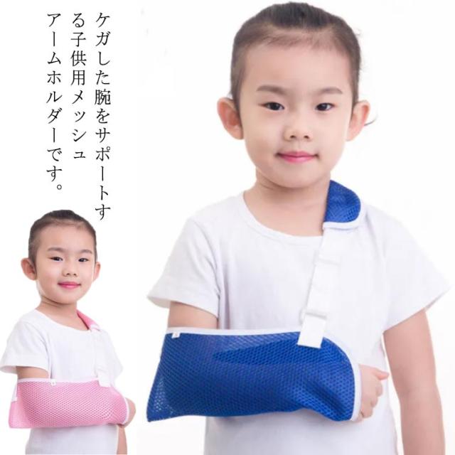 【送料無料】子供用 腕つりサポーター アームホルダー 三角巾 アームスリング サイズ調整 通気 メッシュ ギブスカバー 骨折 脱臼 ねんざ しっかり固定 アームリーダー 腕の怪我 肩掛け 腕つり ショルダースリング こども用 左右対応