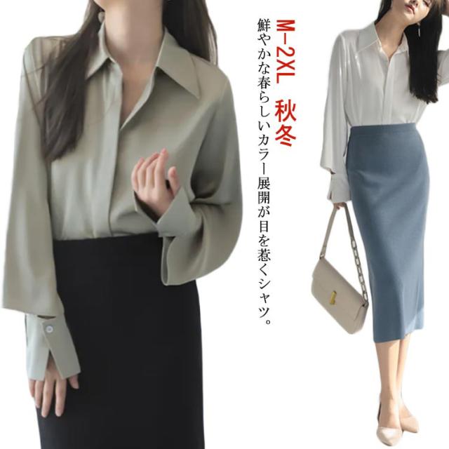 シャツ レディース 長袖 ブラウス トップス サテン調 オフィス ビジネス シャツ リクルート 事務服 制服 おしゃれ ワイシャツ 白シャツ 無地 秋冬 春夏 袖スリット おしゃれ きれいめ 制服 スーツ インナー 就活 OL 送料無料 シンプル 大きいサイズ 入学式 結婚式 送料無料