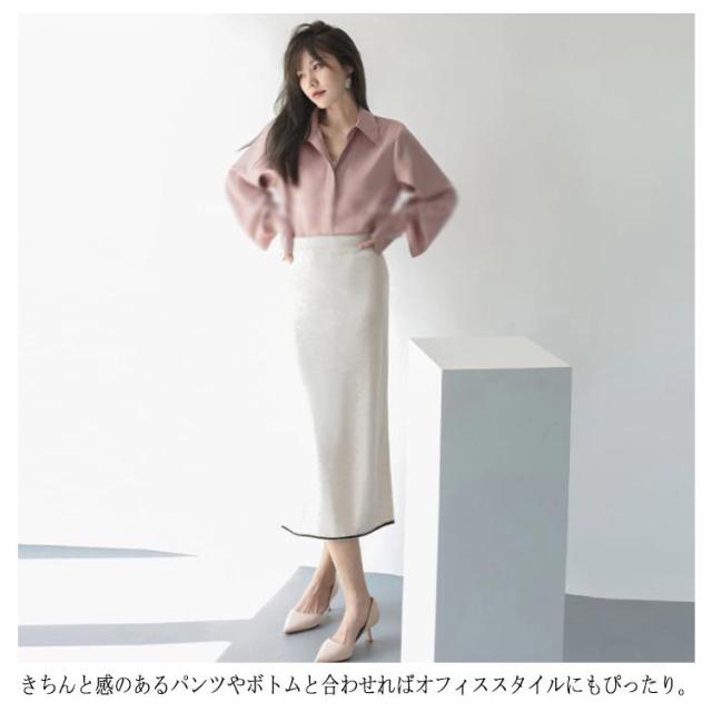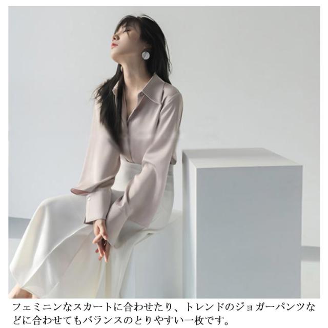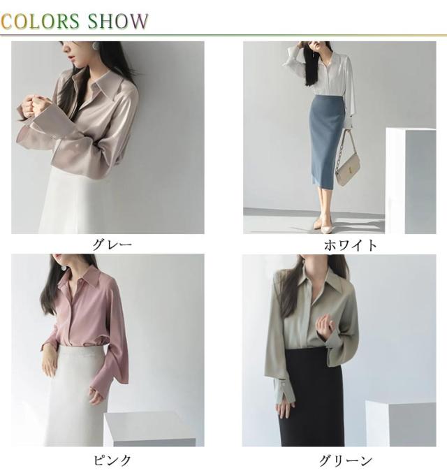 | 鮮やかな春らしいカラー展開が目を惹くシャツ。 袖口に入ったスリットがトレンド感を演出♪ しわになりにくいサテン調素材で、女性らしく着こなせるシルエットにこだわりました。 フェミニンなスカートに合わせたり、トレンドのジョガーパンツなどに合わせてもバランスのとりやすい一枚です。 きちんと感のあるパンツやボトムと合わせればオフィススタイルにもぴったり。 | |