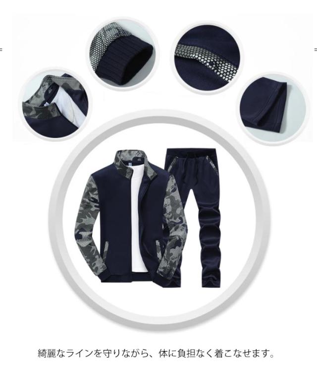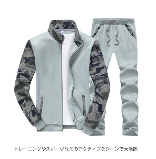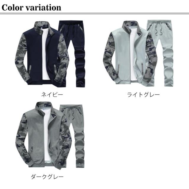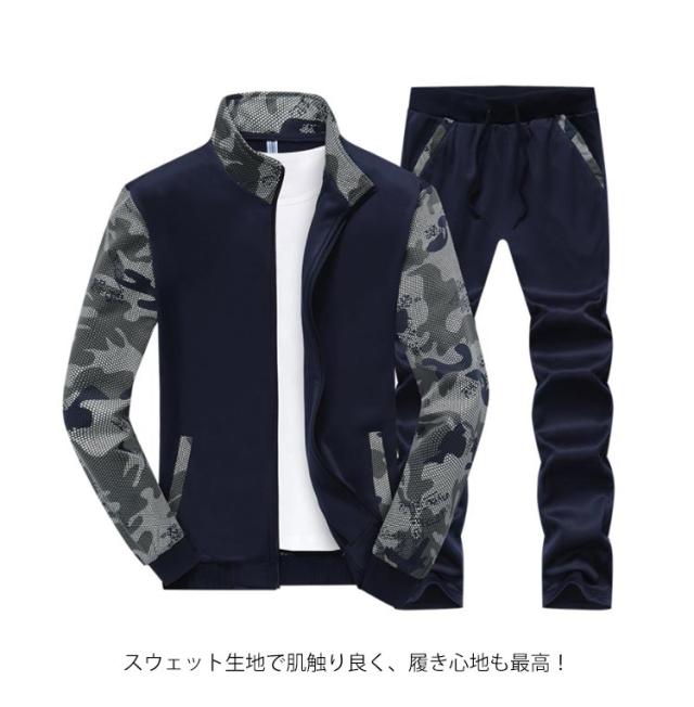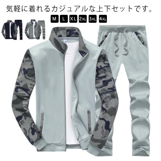 スウェット セットアップ 上下セット 切り替え 迷彩柄 メンズ 長袖 ジップアップ カジュアル パーカー ロングパンツ スポーツ ジャージ トレーニング ルームウェア 大きいサイズ 春秋服 送料無料