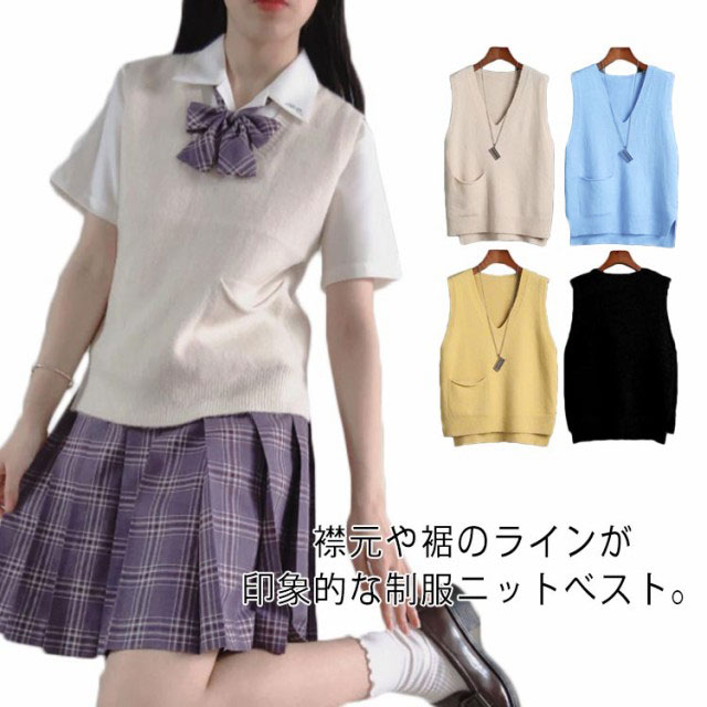 制服 ベスト スクールベスト 夏用 春 秋 ニットベスト 女子高生 通学 学生 中学 JK JC 夏 定番 レディース おしゃれ 着回し トップス 体型カバー ノースリーブ シンプル カジュアル 人気 かわいい 大きい 小さい レイヤード 重ね着 送料無料