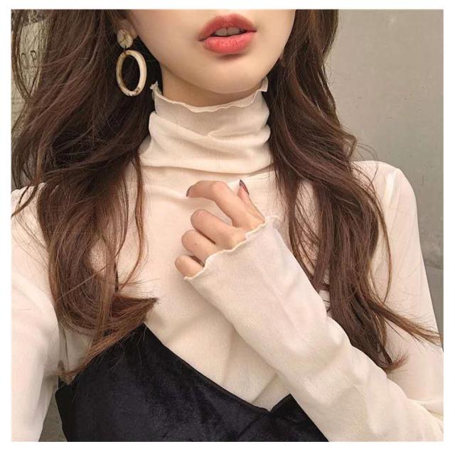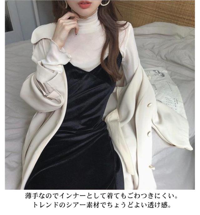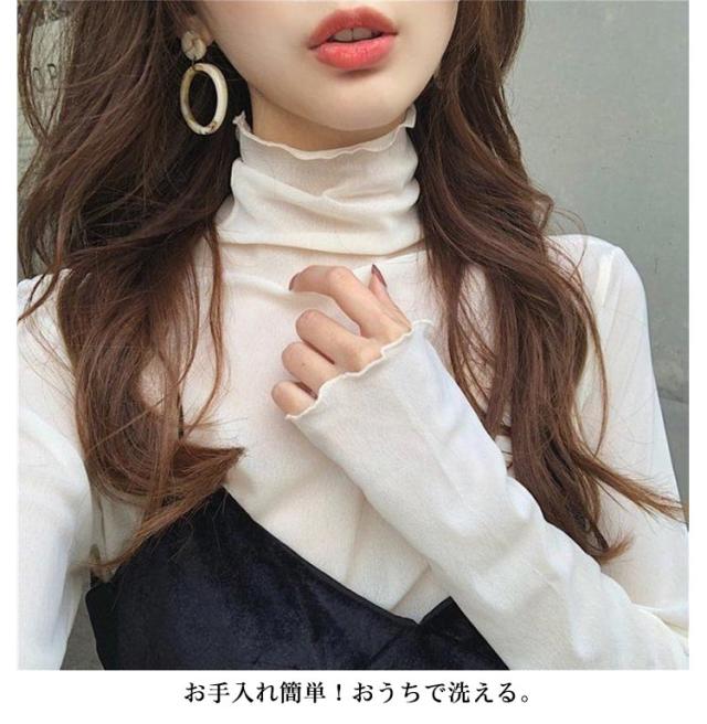 シアートップス トップス 送料無料 チュールトップス レディース 長袖 ハイネック メロウ 重ね着 インナー 透け感 メロウフリル フリルネック レイヤード 冷房 紫外線対策 薄手 きれいめ 日焼け止め オールシーズン