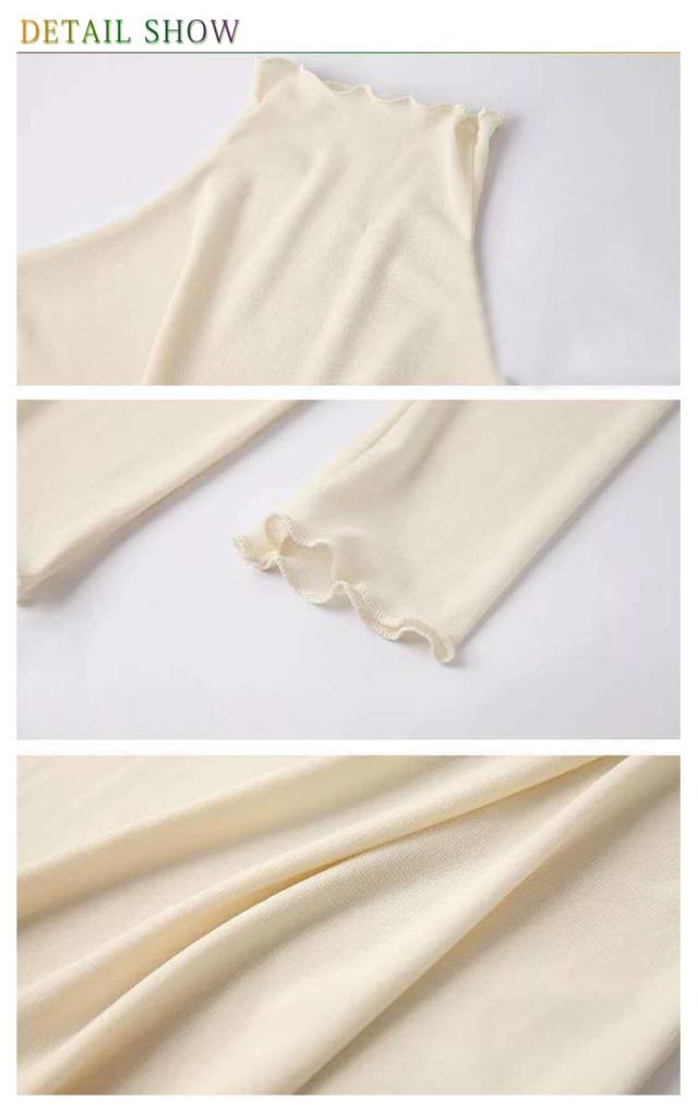 | 一枚は持っておきたい、トレンドのシアートップス。 透け感がレディムードを高め、旬な雰囲気を醸し出します。 首元・袖口・裾にはメロウフリルを施しており、細部まで手を抜かない可愛さ。 薄手なのでインナーとして着てもごわつきにくい。 トレンドのシアー素材でちょうどよい透け感。 柔らかなチュール素材を使用し、首元はハイネックでUV対策としても露出度調整にも◎ 伸縮性があり、締め付けのない程良いフィット感。 キャミやタンクの上に重ねてコーデの主役としても、レイヤードスタイルのインナーとしてもオススメです♪ 様々なスタイリングに活躍し、デイリーにもオケージョン対応にも◎ お手入れ簡単!おうちで洗える。 ネットに入れて洗濯機でそのまま洗えるので衛生的&お手入れ簡単◎ レイヤードに◎オールシーズン着回せる万能トップス。 | |