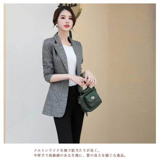テーラードジャケット レディース 春 ジャケット チェック スプリングコート スリム 細身 ミドル丈 春 秋 アウター 裏地付き スーツジャケット 通勤 カジュアル オフィス 韓国ファッション おしゃれ【送料無料】