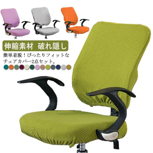 送料無料 オフィスチェアカバー 2点セット 昇降式椅子座面カバー 椅子カバー オフィス用 事務椅子用 伸縮素材 着脱簡単 洗濯可能 背もたれ部分 座面部分 セパレート 無地 おしゃれ 破れ隠し 汚れ防止