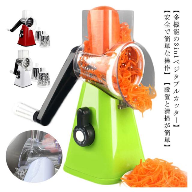 多機能 スライサー 野菜スライサー カッタースライサー 千切り マルチスライサー ぐるぐる スライサー ハンドル 回す 回転式 刻む 簡単 スライス セット スライス 細切り お手入れ簡単 家庭用 洗いやすい