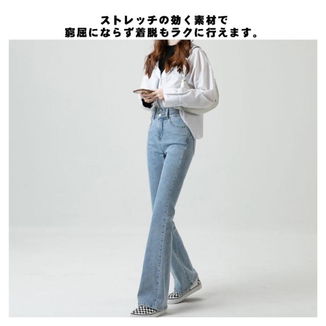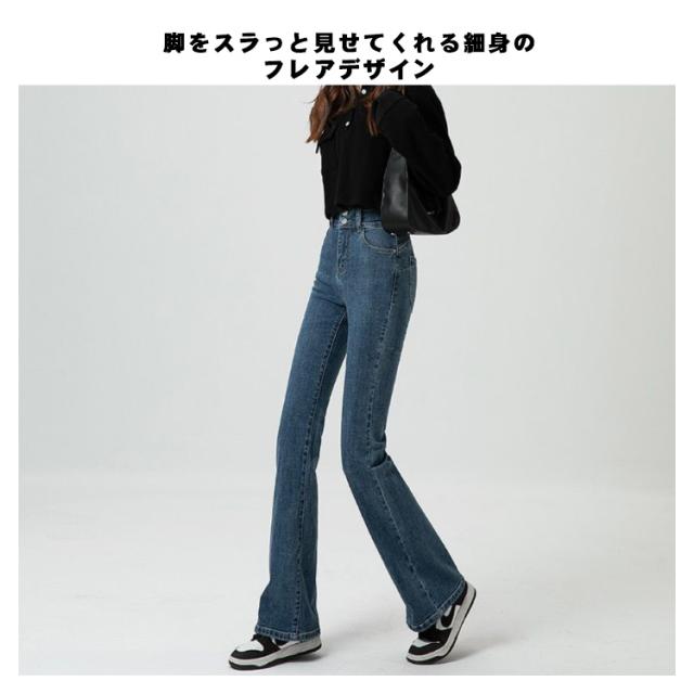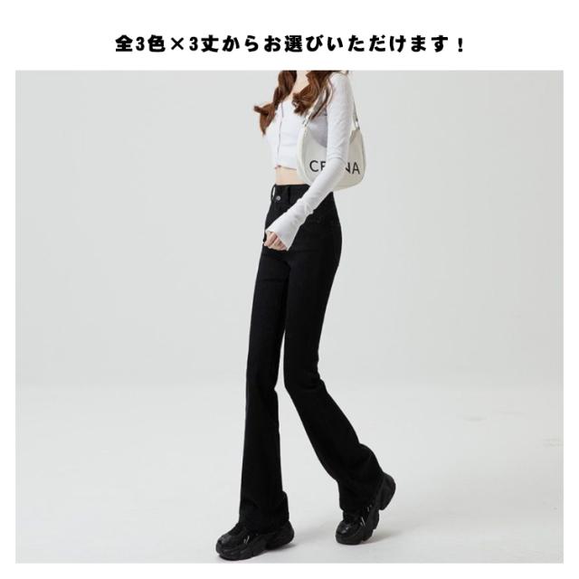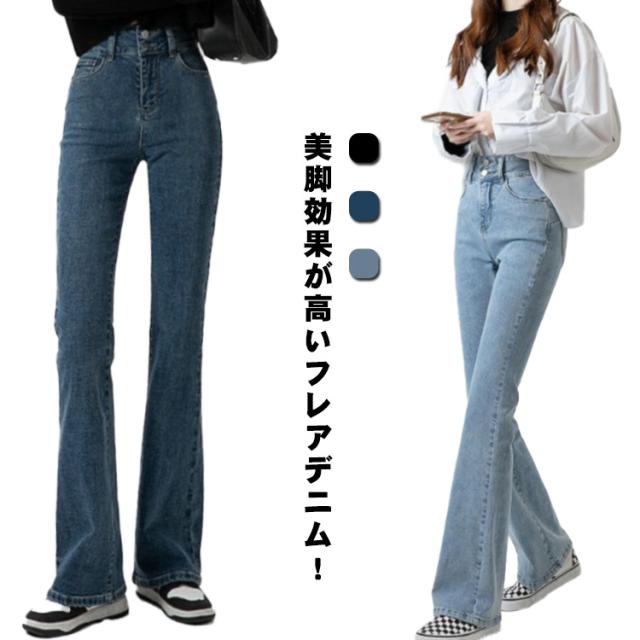 選べる3丈と3色 送料無料 フレアパンツ 春秋 春 秋 デニム レディース ハイウエスト 脚長効果 大きいサイズ フレアデニム ブーツカット ポケット 美脚ライン 脚長効果 韓国 韓国ファッション レディース 20代 30代 40代 50代 無地 シンプル カジュアル