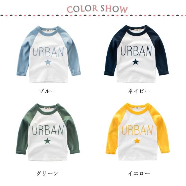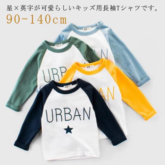 Tシャツ カットソー 長袖 ラウンドネック ラグラン袖 子供用 キッズ トップス 丸首 丸襟 プリント 星 スター 英字 アルファベット バイカラー ツートンカラー カジュアル 可愛い かわいい 男の子 女の子 男児 女児 子供服 子ども服 送料無料
