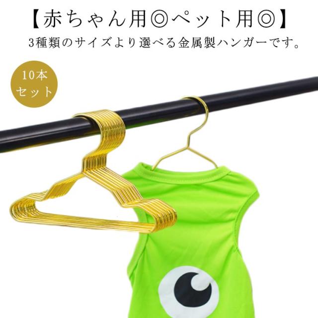 【10本入り】犬服 ハンガー 12cm 15cm 20cm 犬 猫 お洋服ハンガー 衣類ハンガー Sサイズ Mサイズ 小型犬 中型犬 猫服 小動物服 ペット用 子供用 赤ちゃん用 物干しハンガー スチール ゴールド おしゃれ 【送料無料】