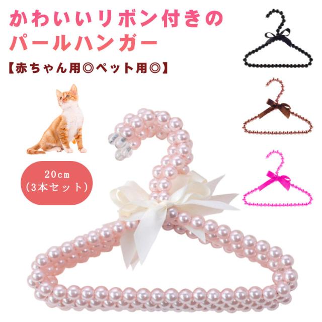 【3本入り】パール ハンガー 20cm 赤ちゃん用 ペット用 衣類ハンガー 猫服 犬服 ハンガー 犬 猫 小型犬 中型犬 小動物服 子供用 お洋服ハンガー 物干しハンガー りぼん付き おしゃれ かわいい 【送料無料】