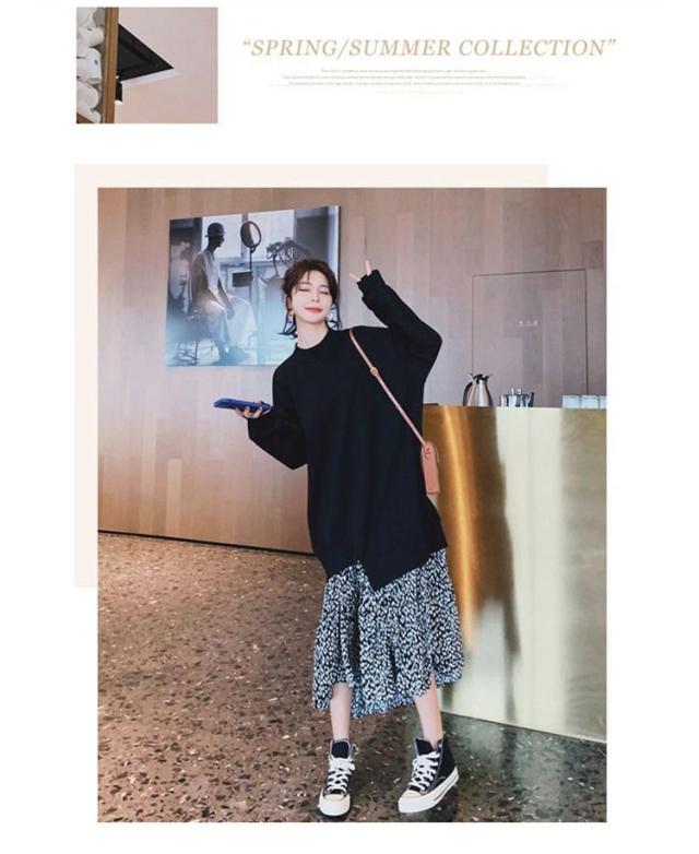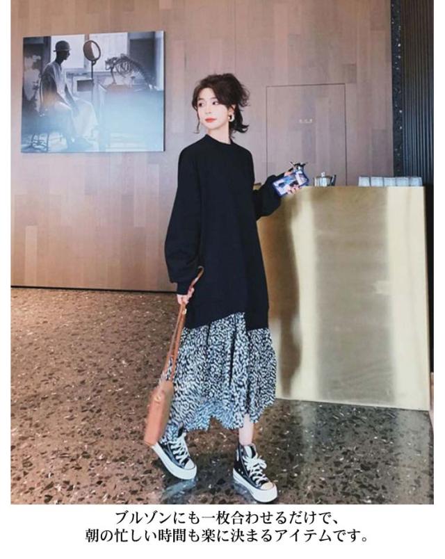 パーカーワンピース 大きいサイズ ダルメシアン柄 切り替え ワンピース 長袖 フェイクレイヤード ロングワンピース ロングパーカー ゆったり 体型カバー 春 秋 カジュアル かわいい 韓国ファション M L XL 2XL 3XL 4XL
