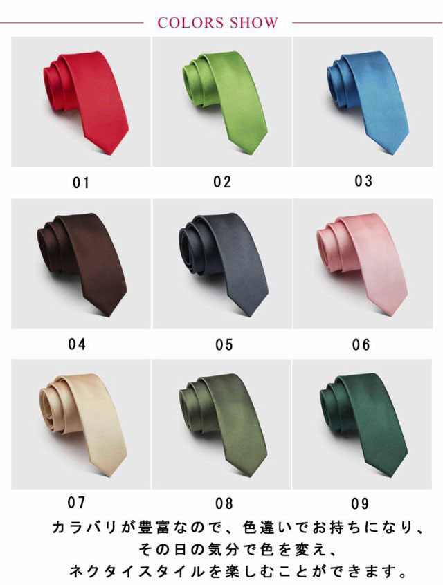 ネクタイ 無地 カラバリネクタイ カラーネクタイ フォーマルネクタイ メンズ グリーン ゴールド ネイビー ピンク ブラウン レッド 黄色 黒 赤 緑 6cm幅 全9色 おしゃれ 送料無料
