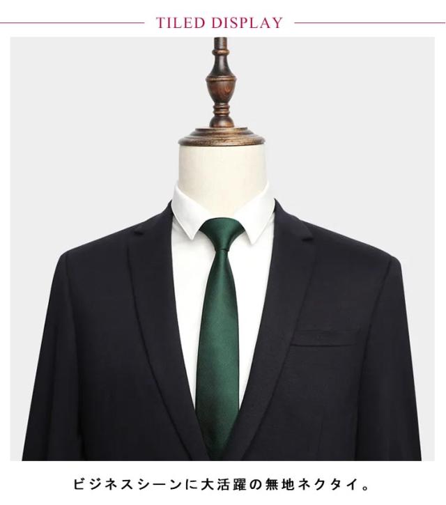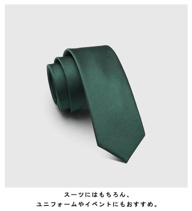 | ビジネスシーンに大活躍の無地ネクタイ。 細めな6cm幅はとても使い勝手が良い。 スーツにはもちろん、ユニフォームやイベントにもおすすめ。 ボーイッシュなコーディネートが好きな女性もオススメです。 カラバリが豊富なので、色違いでお持ちになり、その日の気分で色を変え、ネクタイスタイルを楽しむことができます。 | |