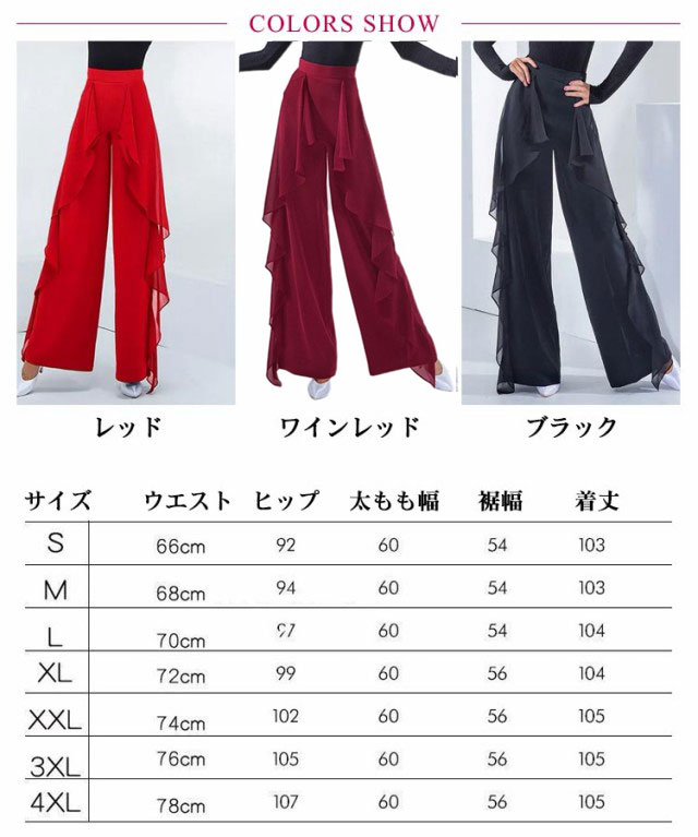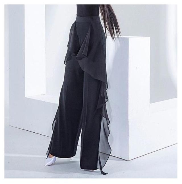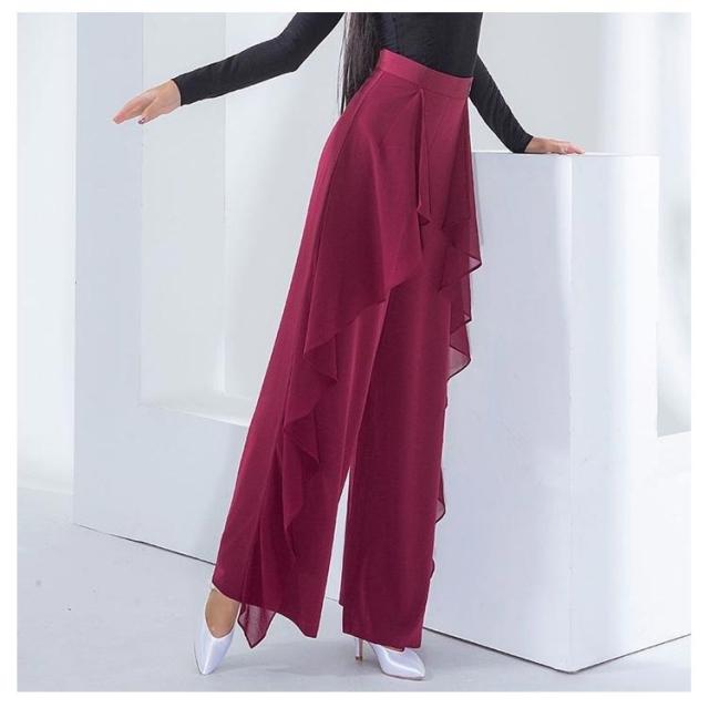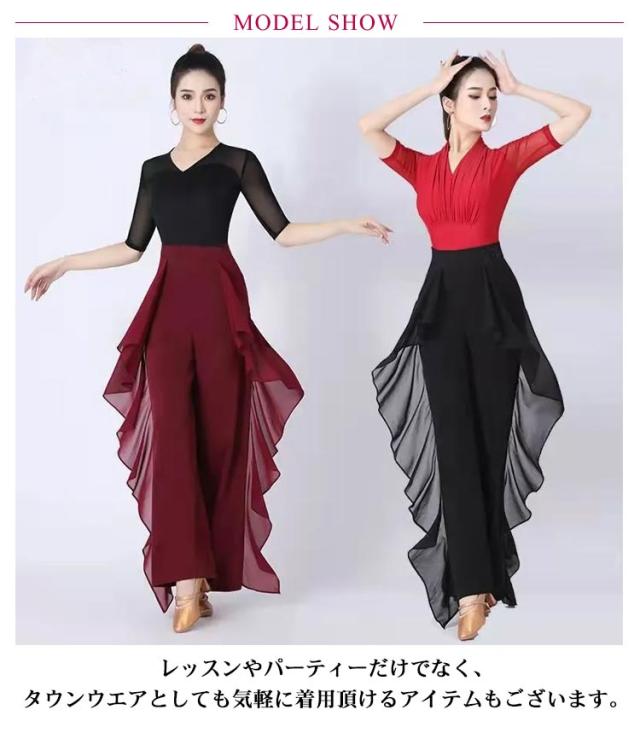 社交ダンス パンツ レディース ダンスパンツ フリル ワイドパンツ スラックス ズボン 社交ダンスウェア ラテンダンス パンツ ウエストゴム レッスン 舞台 競技 練習着 ダンス衣装 衣裳 女性 ダンスウェア 無地 パーティー衣装 ヨガ 送料無料