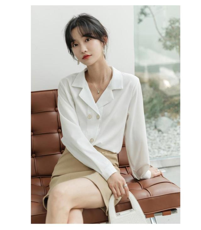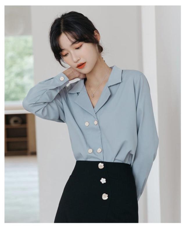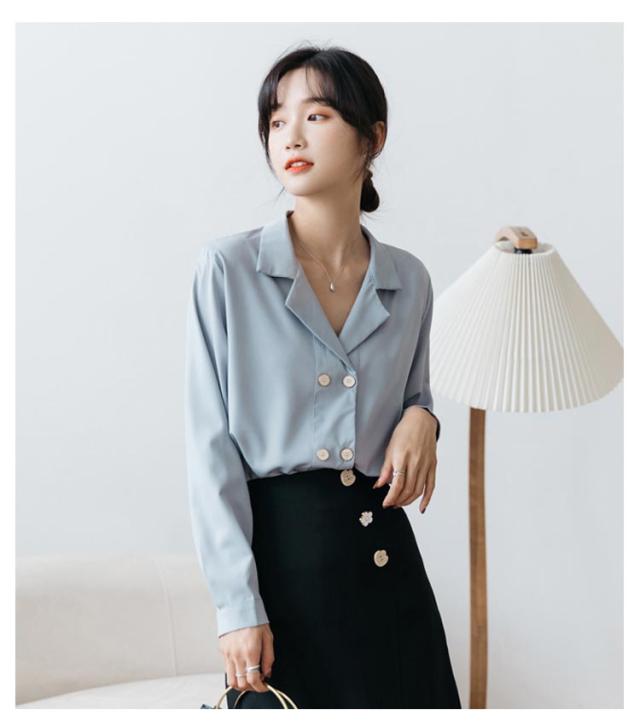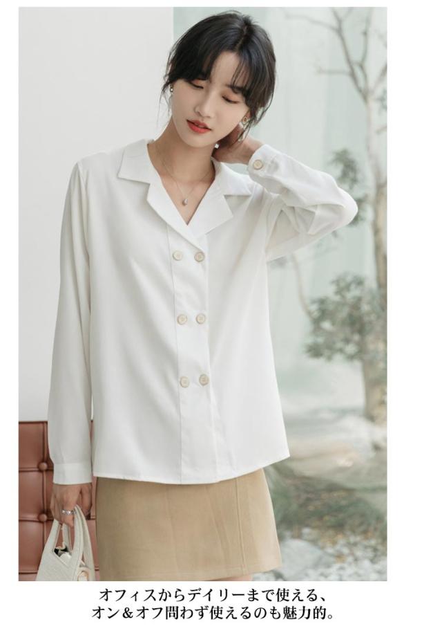 送料無料 Vネック ブラウス 長袖 シャツ レディース トップス とろみシャツ ダブルボタン シフォン ブラウス 開襟シャツ フォーマル ゆったり 大人 夏服 春服 秋服 シンプル オフィス きれいめ かわいい ビジネス 通勤 OL カジュアル おしゃれ 着痩せ