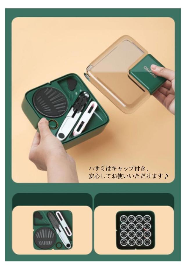 | 持ち運びに便利なミニソーイングセット 裁縫用の基本的な道具は全部揃えて、きちんと収めており、小物の失いを心配することも要らないです。 磁石を内蔵して、針紛失防止を役に立ち!小学生の皆さんと高齢者たちにとっては便利なものです。 ハサミはキャップ付き、安心してお使いいただけます♪ バッグや車、オフィスの引き出しなどに入れても邪魔にならないコンパクトサイズ。 一人暮らしの方や単身赴任の男性の方、お子様でもこれさえあれば一通りの裁縫に対応出来ます | |