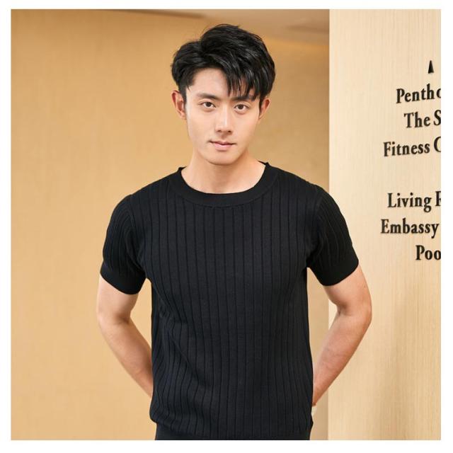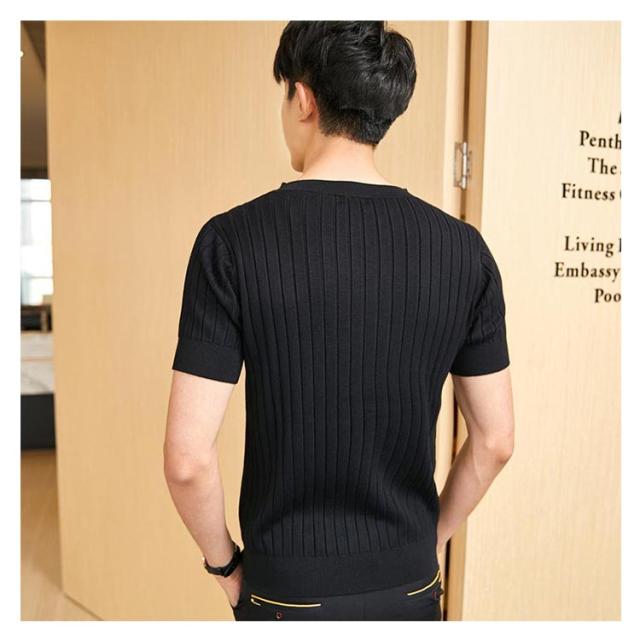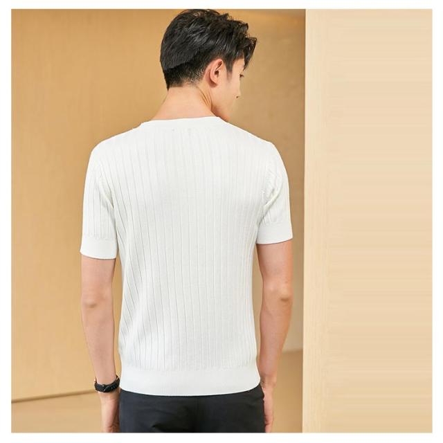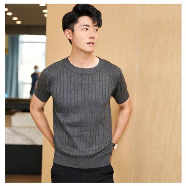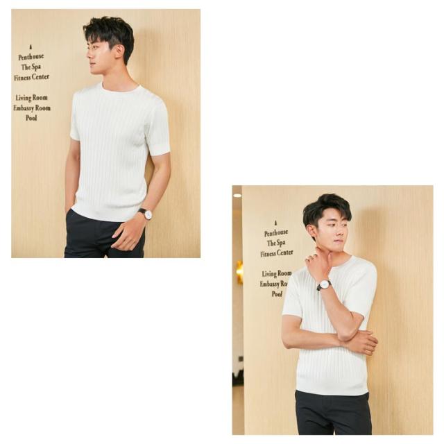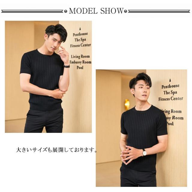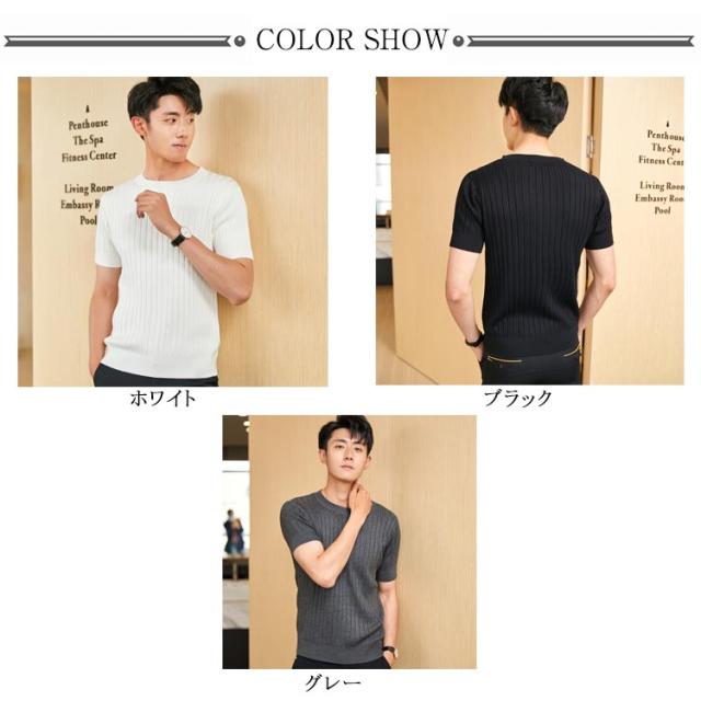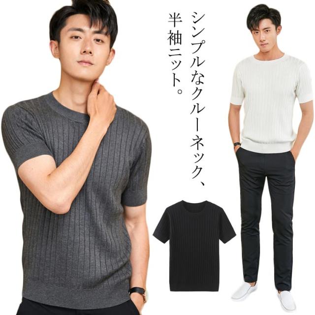 半袖ニット メンズ リブニット クルーネック プルオーバー 厚手 カジュアル シンプル 紳士用 大きいサイズ 春 秋 無地 全3色