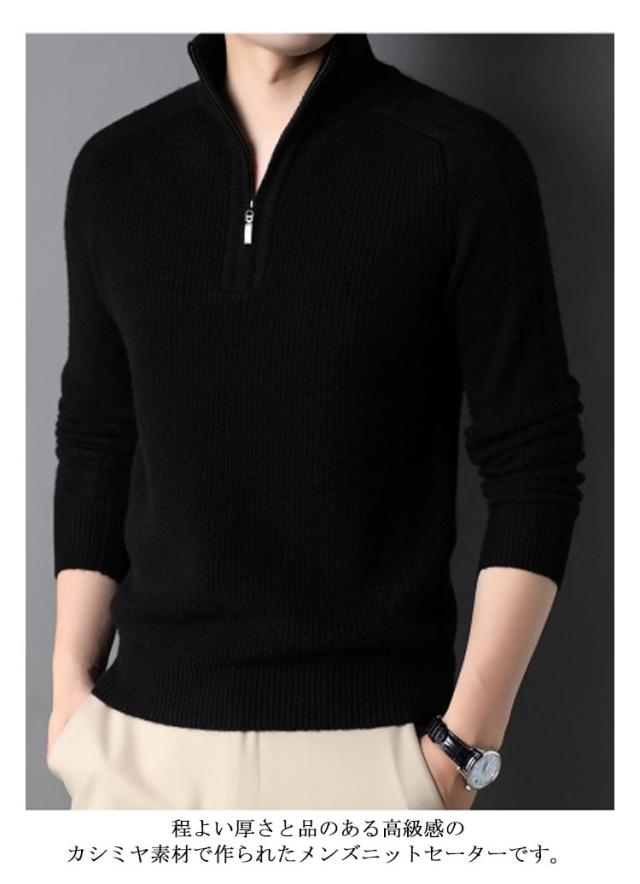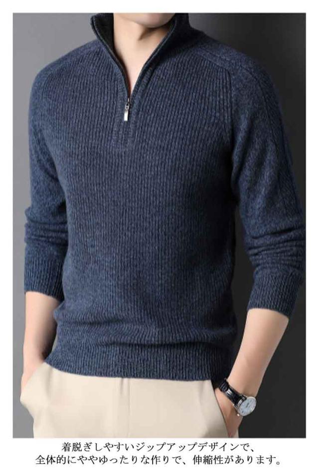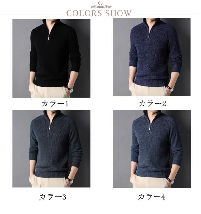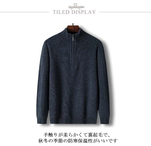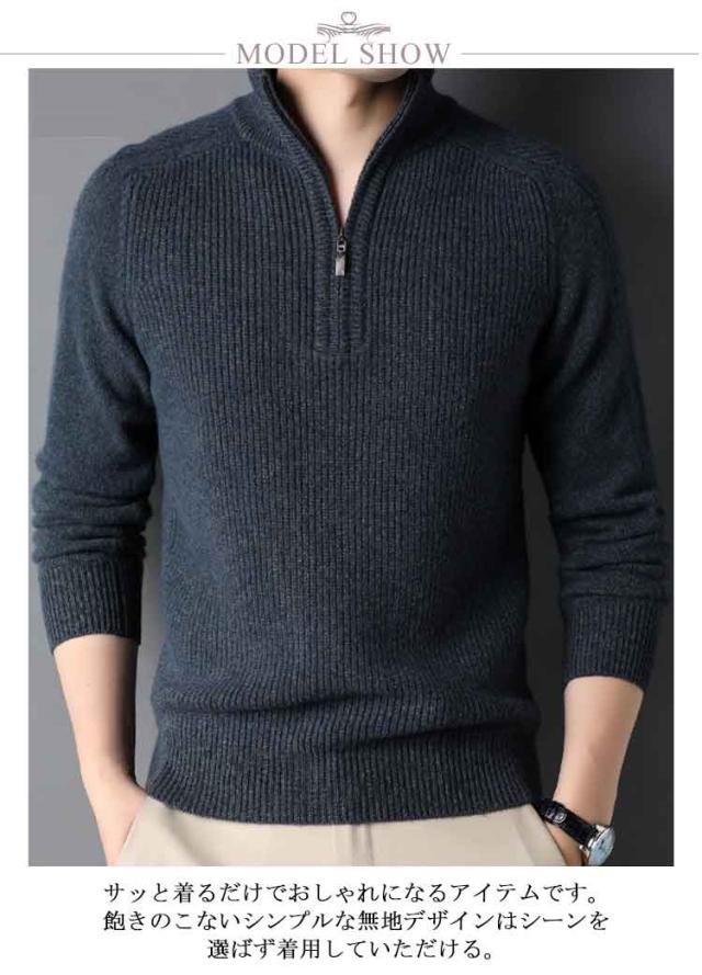 ウール セーター メンズ ハーフジップ ゴルフ ハーフジップニットセーター ウールニット ウールプルオーバー ゴルフウェア スタンドカラー メンズニット 厚手 暖かい 無地 ニットトップス ハイネック 春秋 冬 秋冬