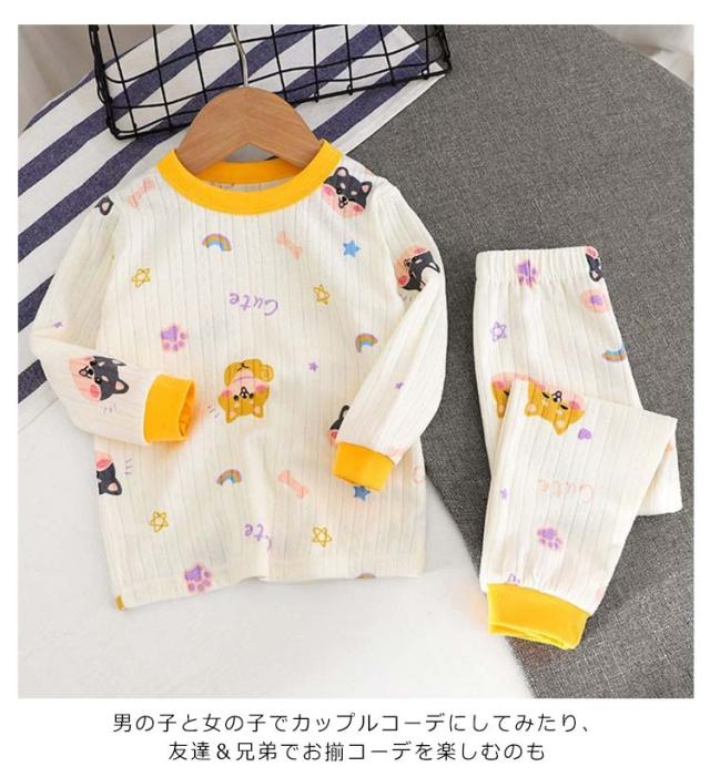 | 見た目もおしゃれで可愛いキッズパジャマです。 柔らかく、ソフトな肌触り♪着心地も抜群で快適 伸縮性を出し、快適な着心地を実現しました 生地もしっかりしていて汗っかきな子にはこれ2枚で良さそう 男の子と女の子でカップルコーデにしてみたり、 友達&兄弟でお揃コーデを楽しむのも | |