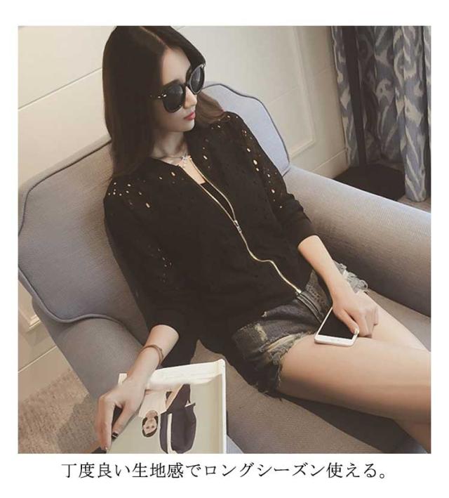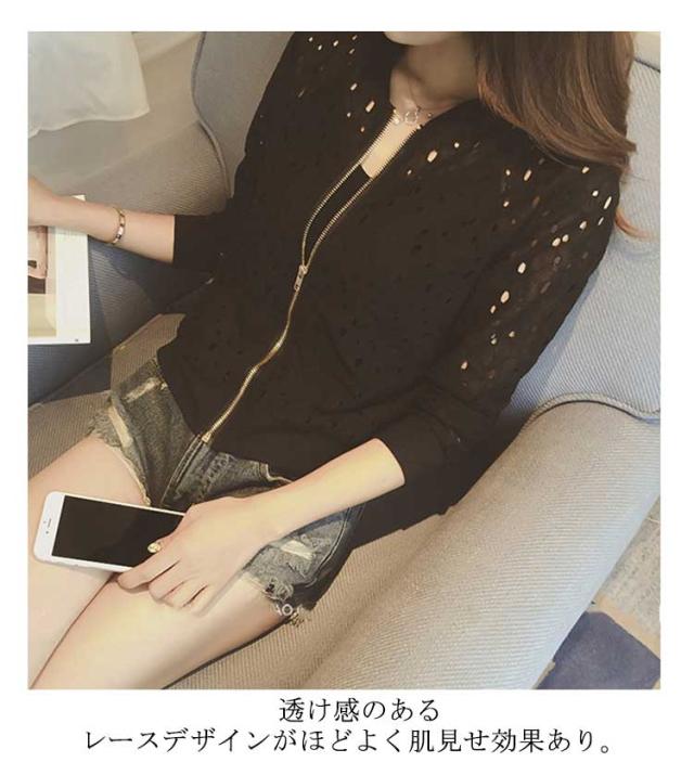 サマージャケット ノーカラージャケット 送料無料 レース ジャケット UVカット カーディガン ショート丈 レディース レース スタジャン カーディガン UVパーカー 薄手 ラッシュガード 冷房対策 紫外線対策