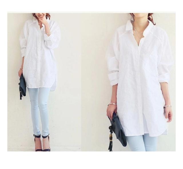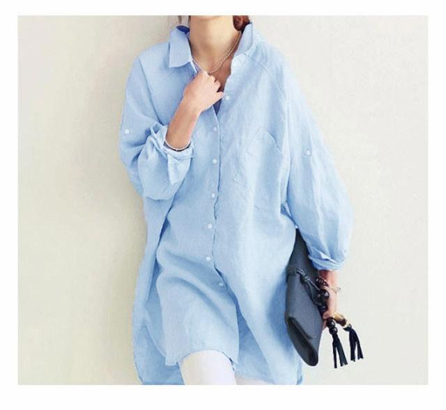 春シャツ ロング シャツ ブラウス チュニック 送料無料 レディース 長袖 チュニックシャツ ロングシャツ チュニック 大きサイズ 体型カバー 綿 レイヤード カジュアル 春 秋 無地 袖ボタン留め ゆったり