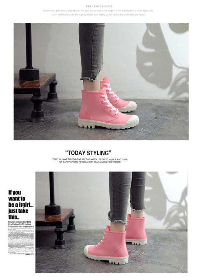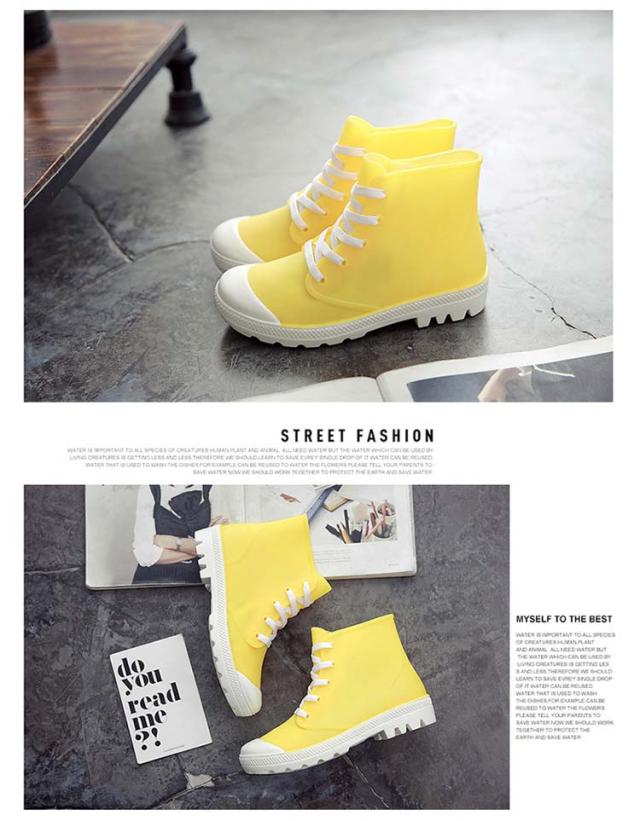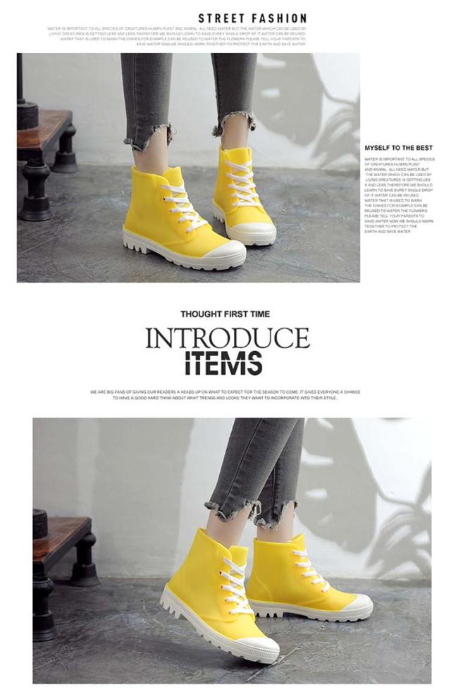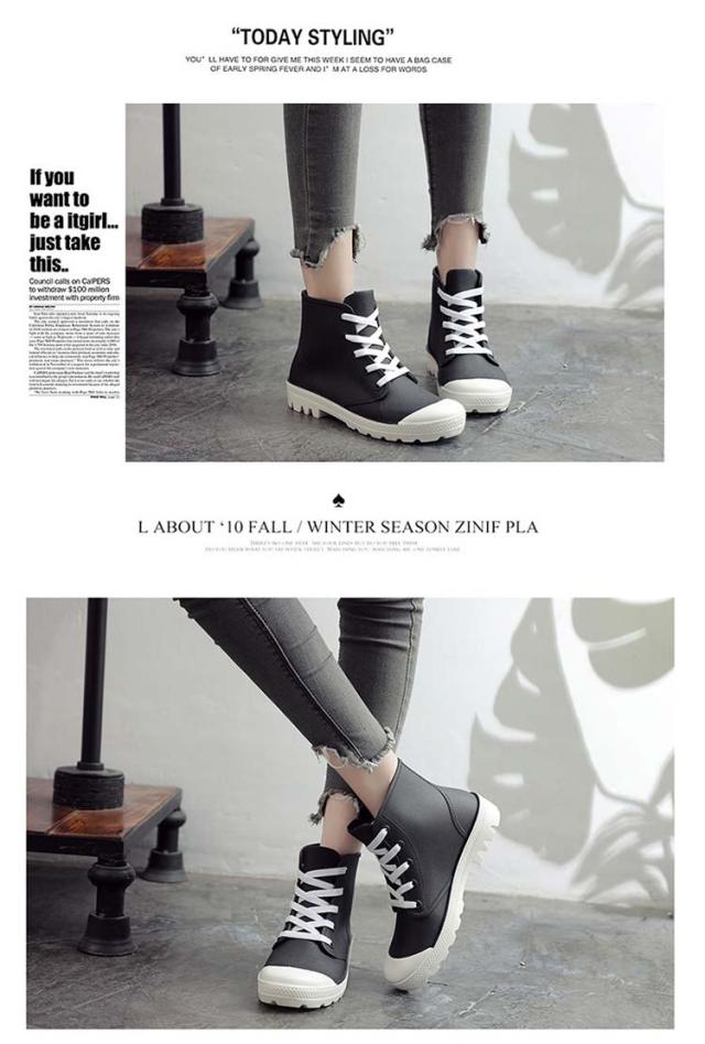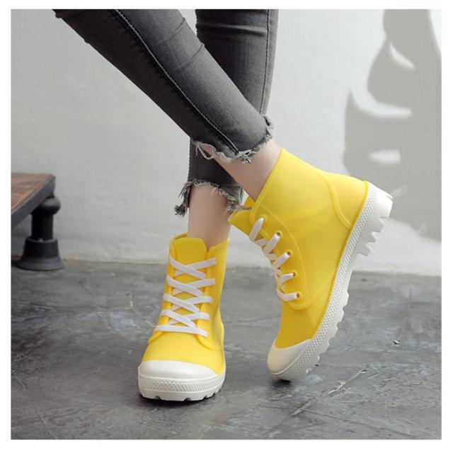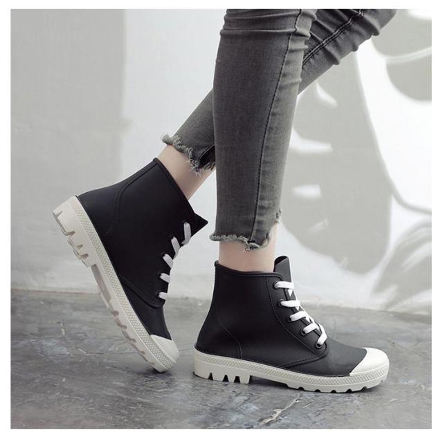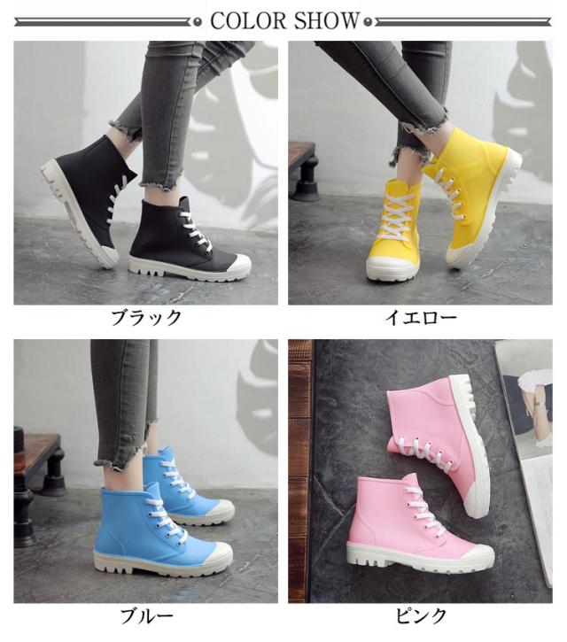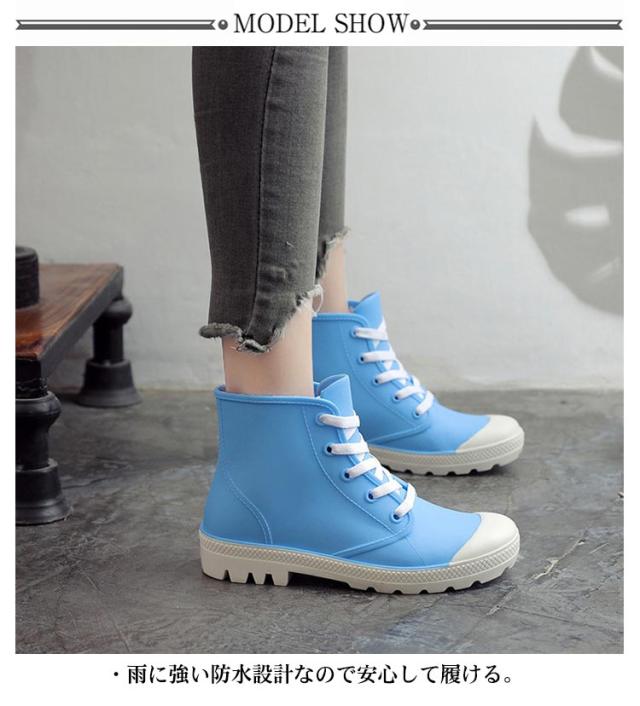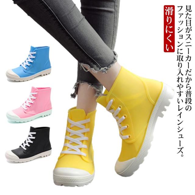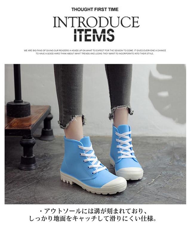 レインブーツ レディース ハイカット スニーカー レインシューズ 防水 レースアップ ラバーブーツ 滑りにくい 雨靴 梅雨 歩きやすい 履きやすい アウトドア キャンプ 女子 女性 おしゃれ 日常着 通勤 通学 無地 全4色