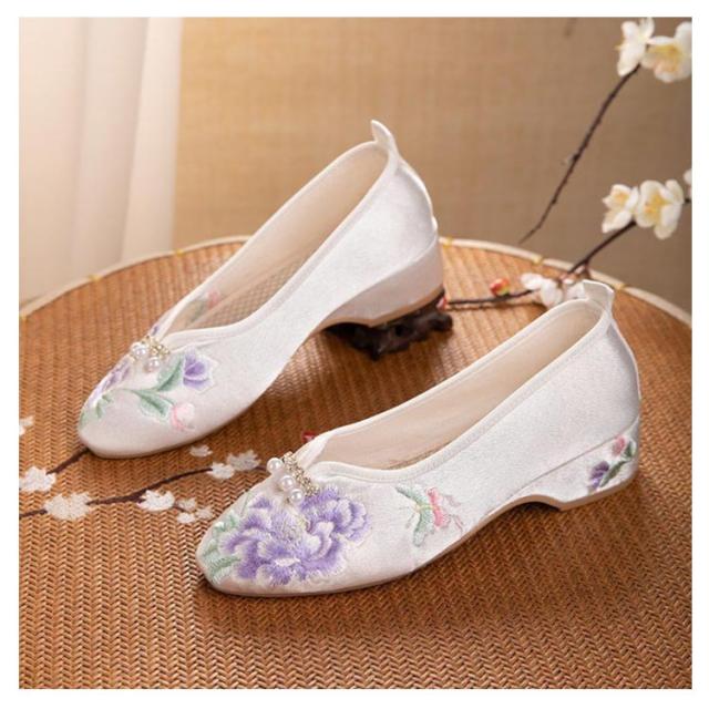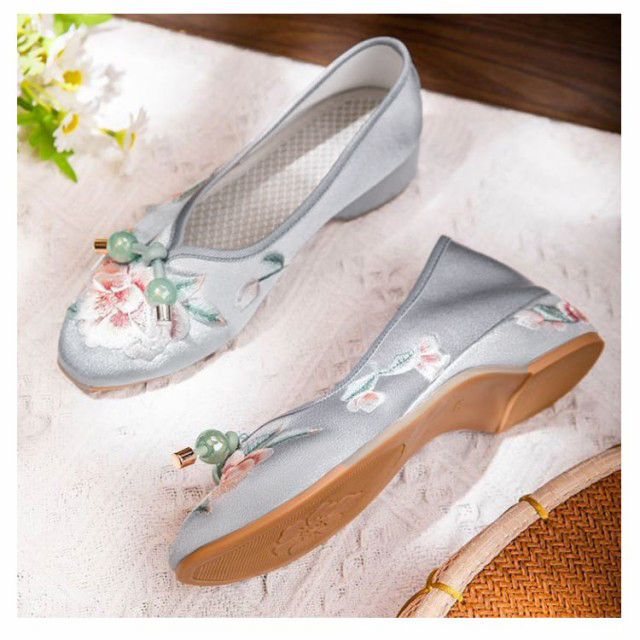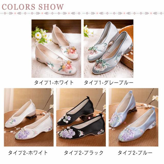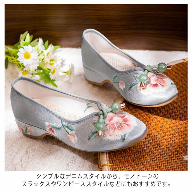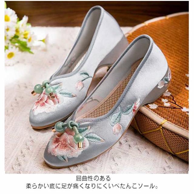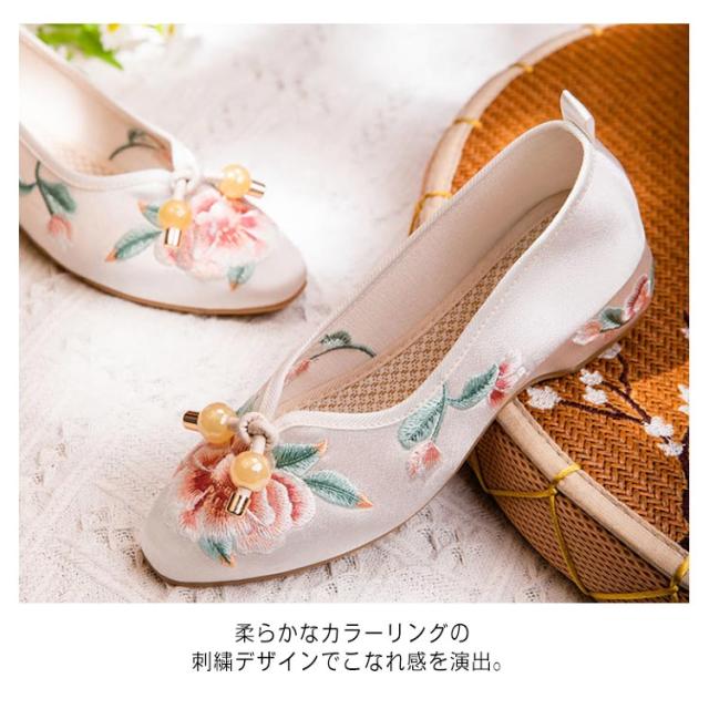 チャイナシューズ 台湾シューズ レディース 刺繍パンプス サテン 刺繍シューズ パンプス ローヒール フラットパンプス ぺたんこ 歩きやすい チャイナ シューズ 花柄刺繍 女性用 婦人靴 中華 コスプレ 唐装 漢服 柔らかい 疲れない おしゃれ