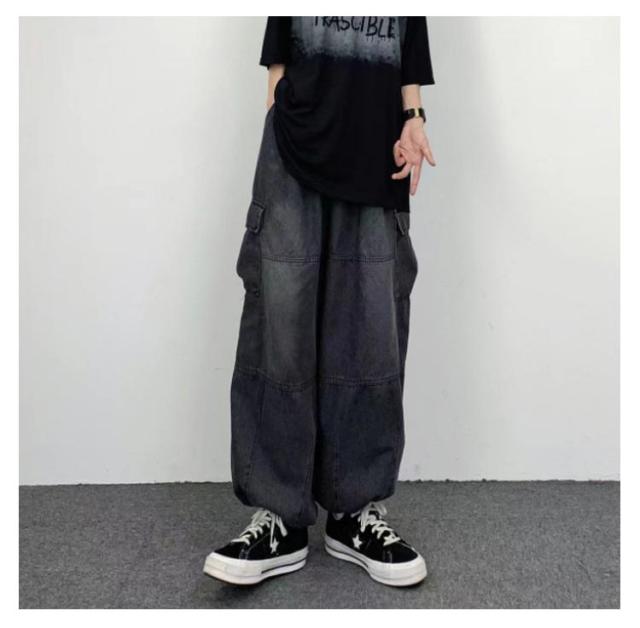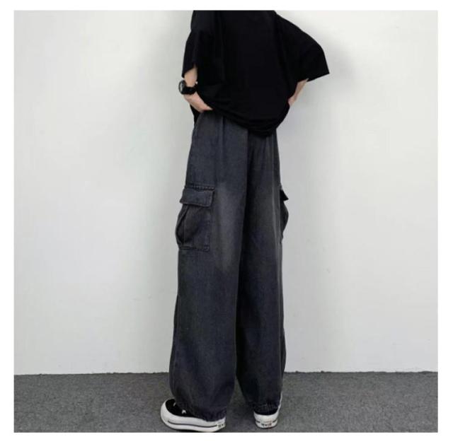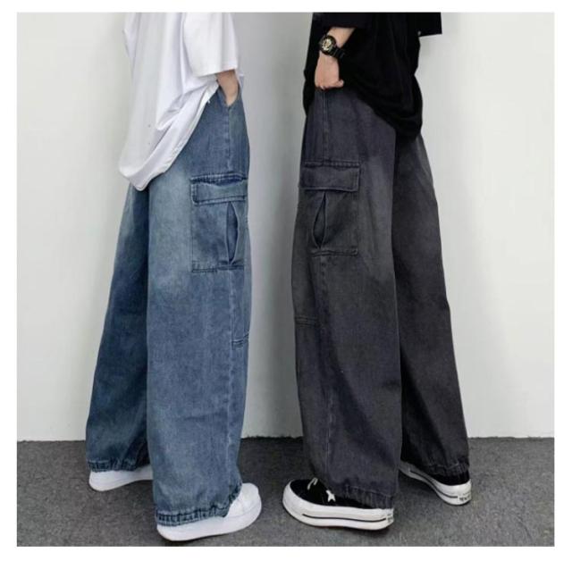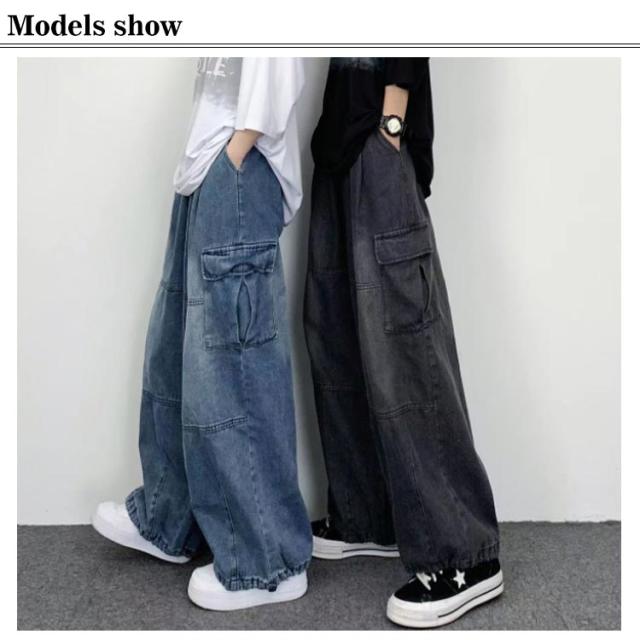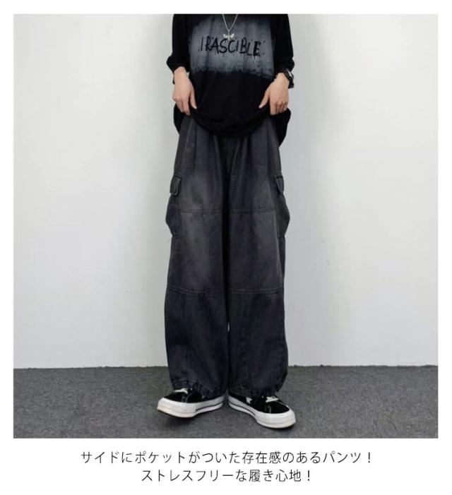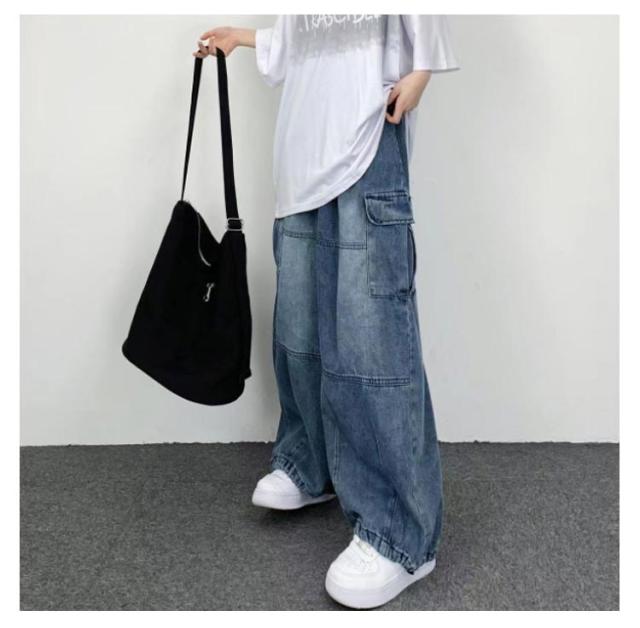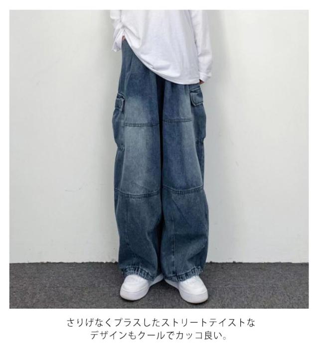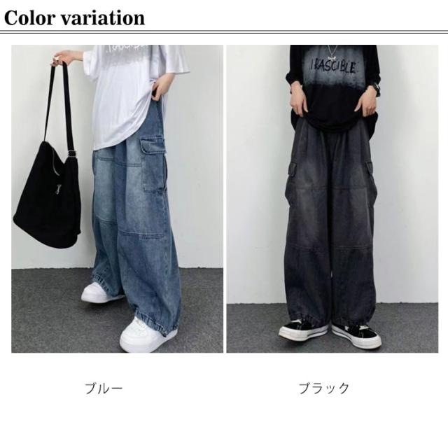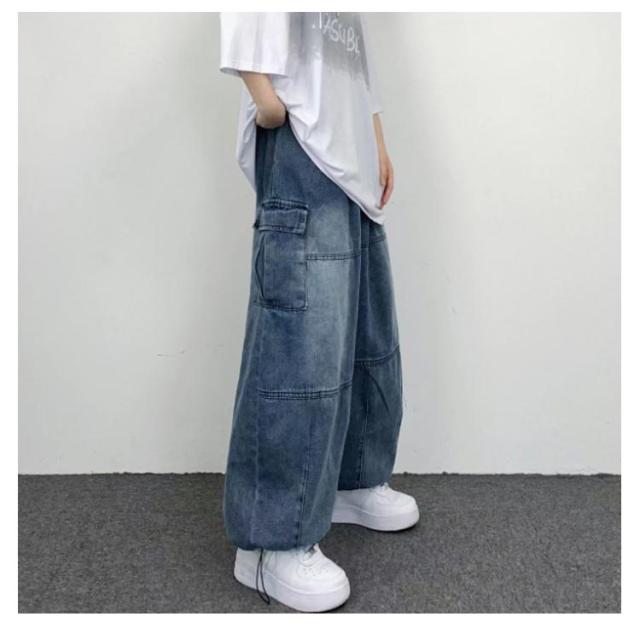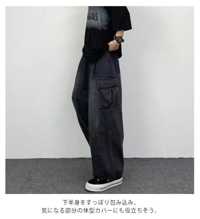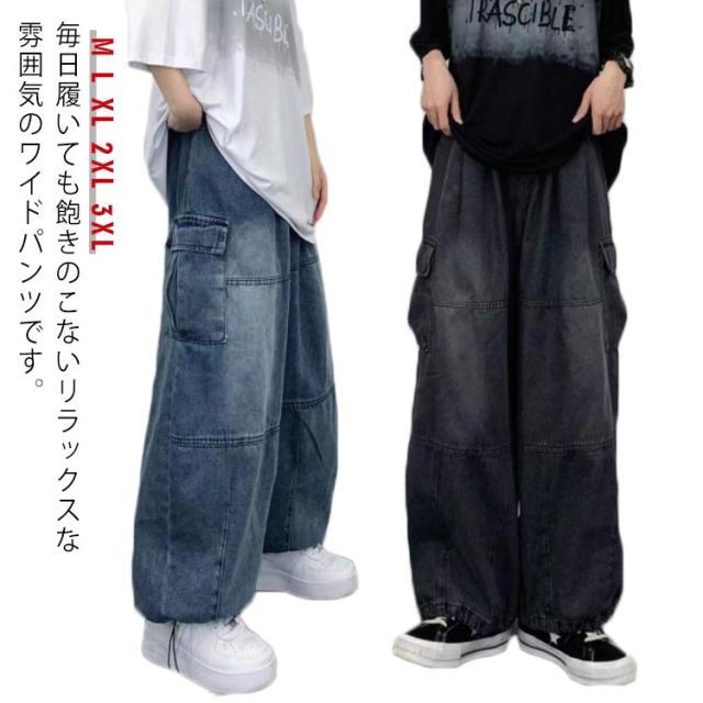 デニムパンツ レディース ワイドパンツ ポケット付き ボトムス 普段着 カジュアル 体型カバー 春秋 お洒落 ロングパンツ ストリート ダンス用 ヒップホップ 大きいサイズ 送料無料