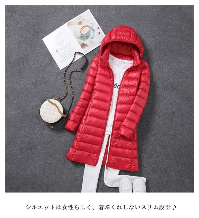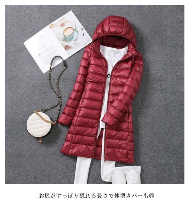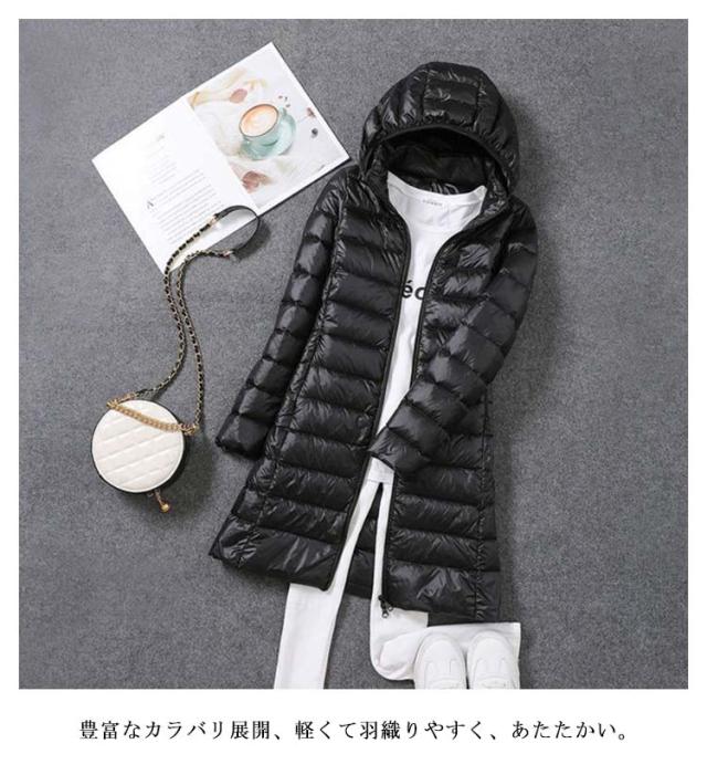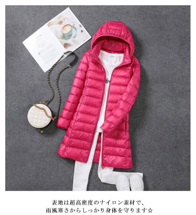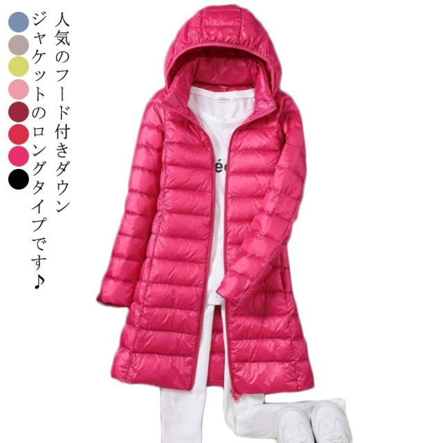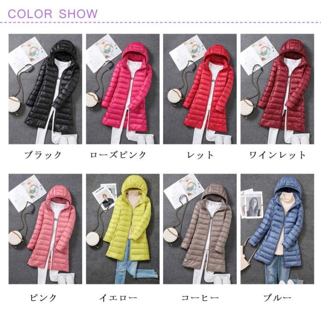 全8色×7サイズ ロングダウンコート レディース ロング丈 ミドル丈 ダウンコート ロング アウター 軽い 軽量 ダウンジャケット ライトダウン コート フード付取り出し可 着痩せ 撥水生地 無地 防寒 シンプル 冬 春 秋冬 コーデ 大きサイズ