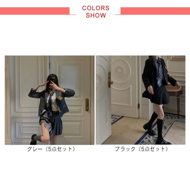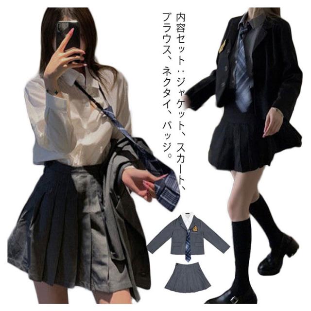 卒業式 スーツ 女の子 韓国 制服 フォーマルスーツ 5点セット ゆったり 大きいサイズ 卒服 子供服 ガールズ 入学式 子供スーツ ジャケット ブラウス シャツ スカート ネクタイ バッジ 小学生 女子高校生 発表会 スーツ S-3XL 送料無料 グレー 黒 ブラック