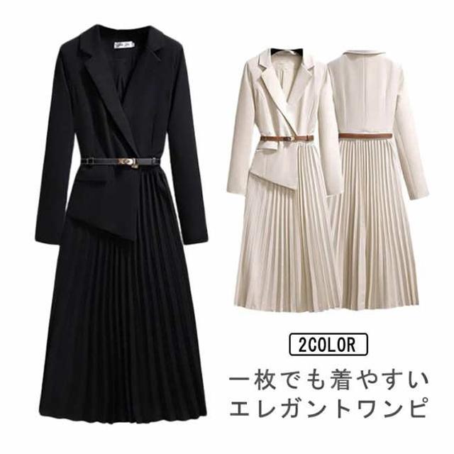送料無料 入学式 ママスーツ レディース ワンピース 卒業式スーツ 七五三 母 卒園式 スーツワンピース フォーマル Vネック プリーツワンピース フェイクレイヤード エレガント セレモニースーツ 長袖 春秋 着痩せ 結婚式 通勤 入園式 卒園式 服装 母親 ビジネススーツ