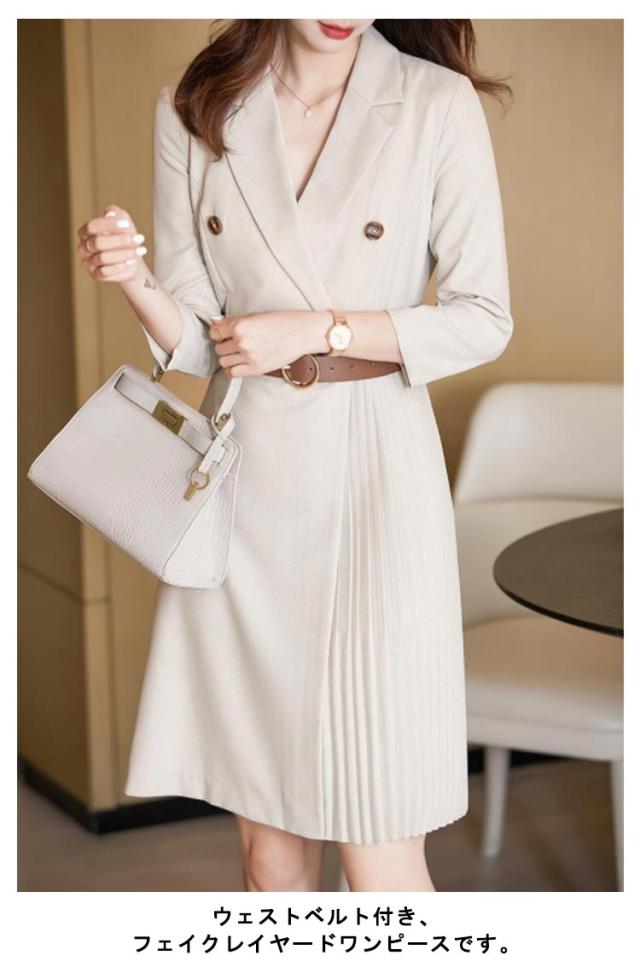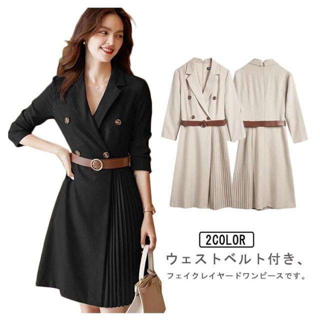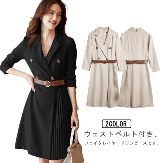 送料無料 スーツワンピース ママスーツ レディース プリーツワンピース ワンピース ママスーツ フォーマル フォーマルスーツ 切り替え べルト付き セレモニー 母親 入園式 入学式 卒業式 卒園式 七五三 女性 服装 Vネック 結婚式