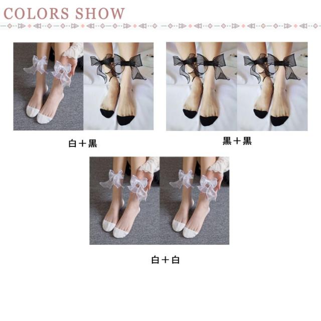 送料無料【2足セット】シースルーソックス レディース 蝶結び付き 靴下 くつした シースルー ソックス ロリィタ コスプレ 黒 白 かわいい 春 夏 シンプル カジュアル ガーリー プレゼント 彼女 ルームソックス ショットソックス おしゃれ 透け感 夏用