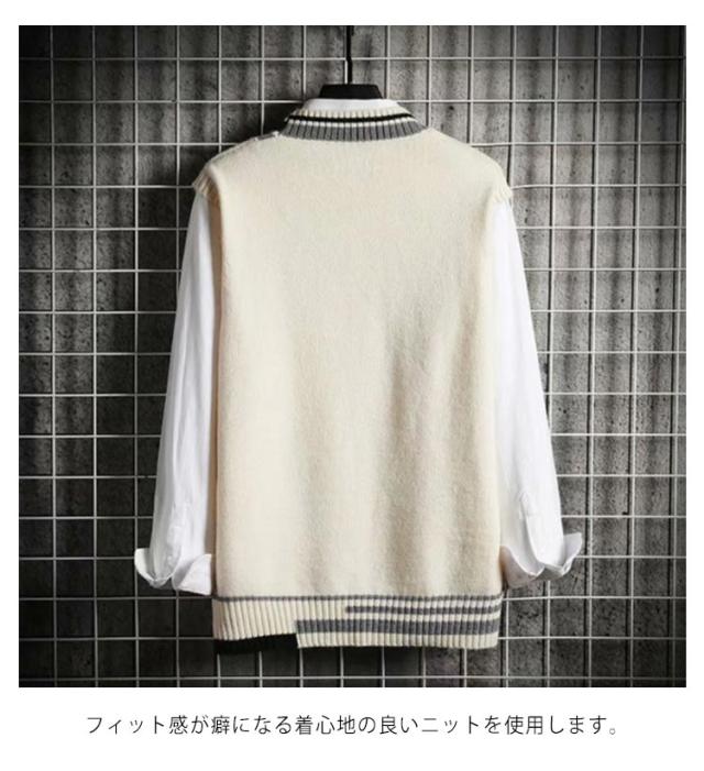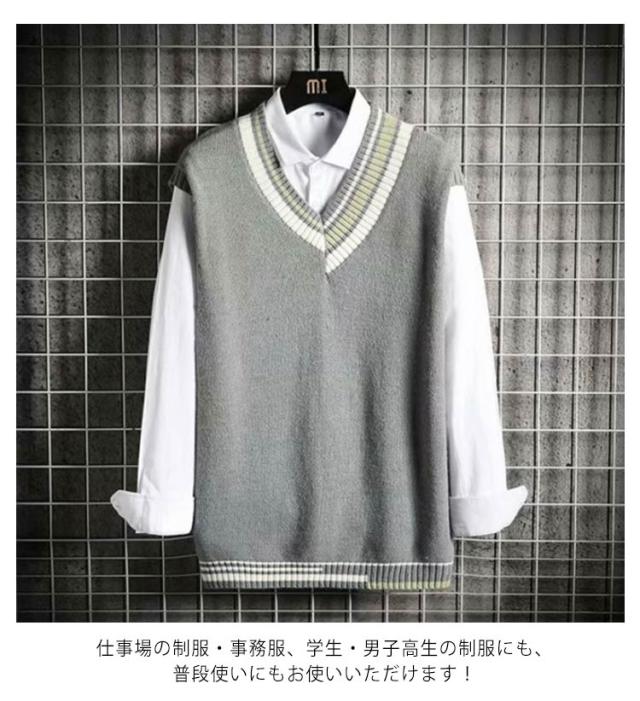 ニットベスト スクールベスト チョッキ Vネック ゆったり ノースリーブ 制服 カジュアル メンズ 学院風 学生服 コスプレ ジュニア 高校生 中学生 お洒落 送料無料