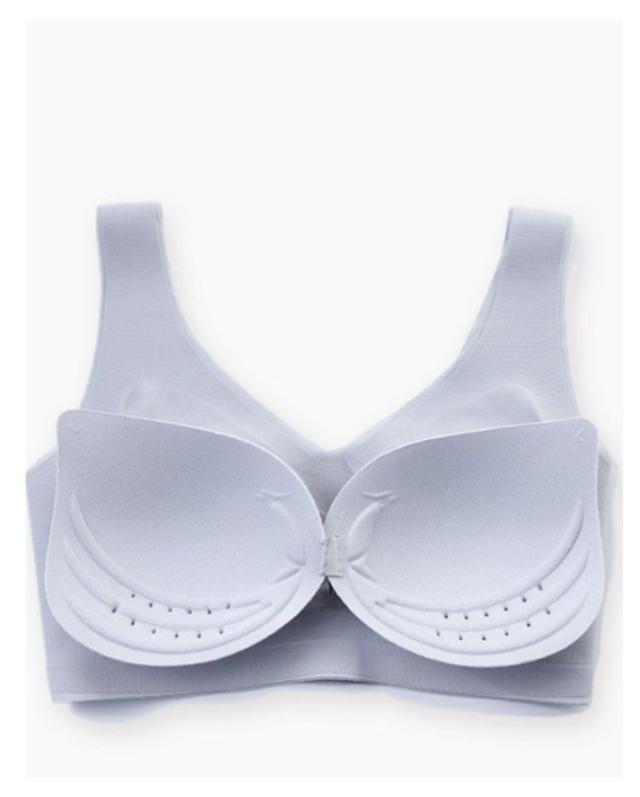 | 大きな胸を小さく見せるブラ。 超薄手のカップで、ボリュームが出すぎないのも嬉しいポイント。 ノンワイヤーで窮屈感を軽減。 脇高仕様で脇のお肉をしっかりとおさえ、大きな胸のすっきり細見えを実現します。 ストラップも太目仕様なので、肩への食い込みも軽減されます。 特有のU字型バックストラップで背中をフラットに抑え、スッキリとした後ろ姿に。 | |