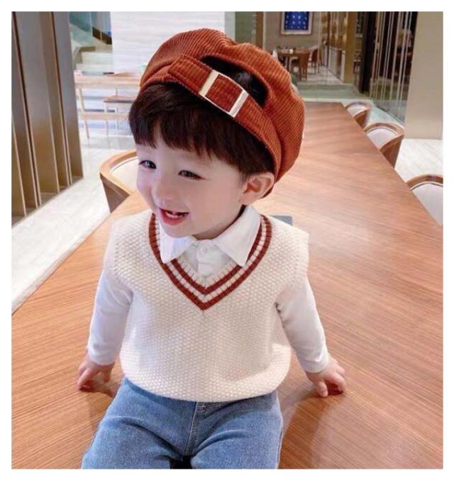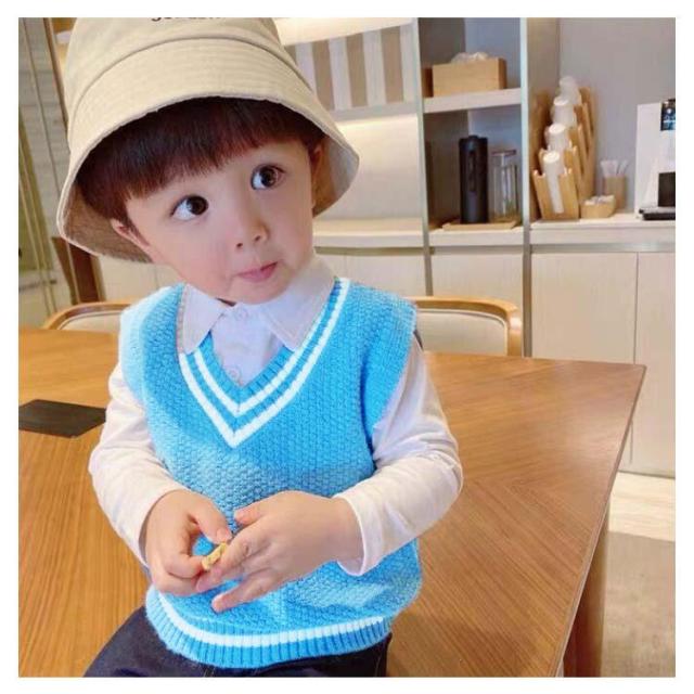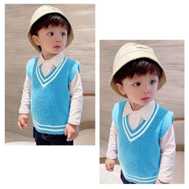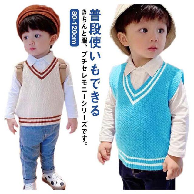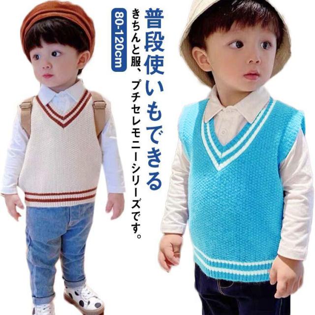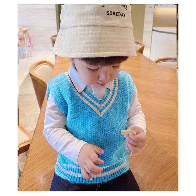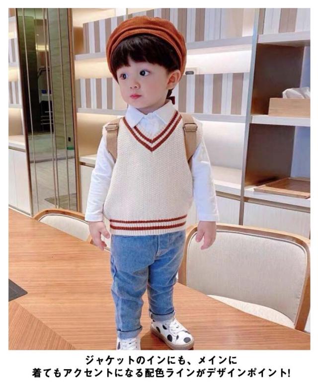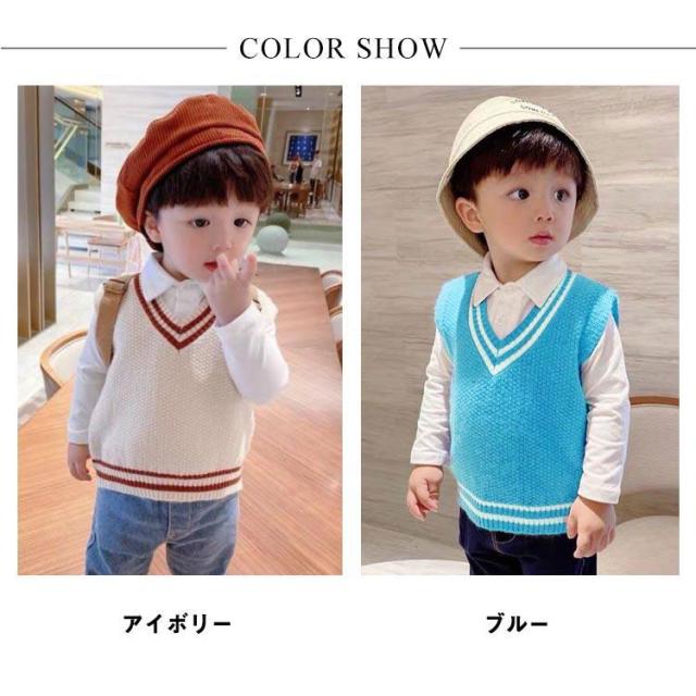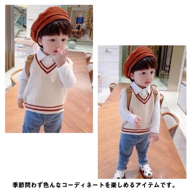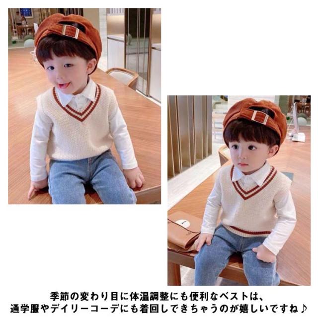 【送料無料】キッズ ニットベスト Vネック 配色 ライン スクールベスト 子供服 赤ちゃん 男の子 女の子 ニット ベスト プルオーバー トップス ベビー服 通園 保育園 入園 小学生 80 90 100 110 120 カジュアル