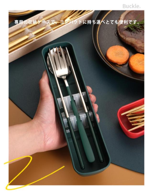 | サイズについての説明 | ケースサイズ:長さ23.8cm×幅6cm 箸:長さ20.8cm スプーン:長さ20.5cm×幅4cm フォーク:長さ20.3cm×幅2.4cm |