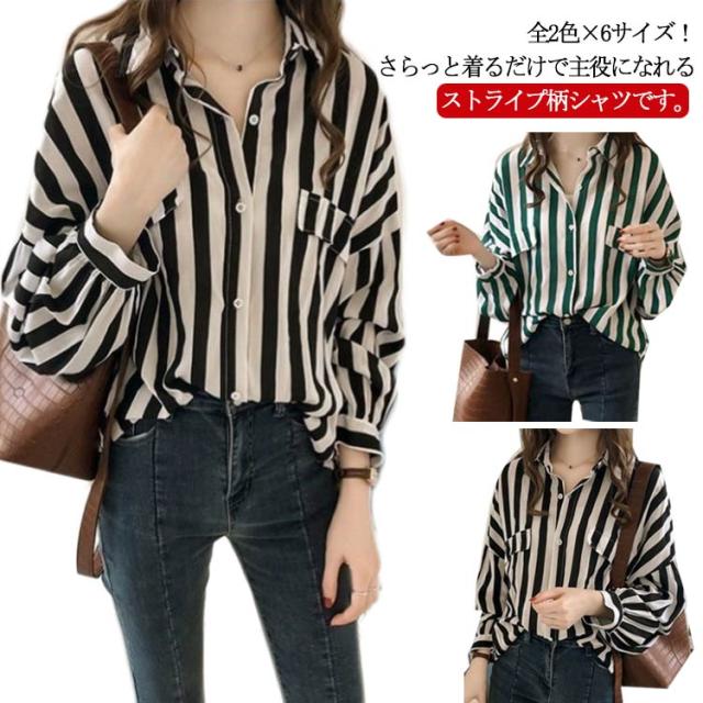 シャツ ブラウス ビッグシルエット 送料無料 シャツブラウス ストライプシャツ 長袖 レディース トップス カジュアルシャツ ゆったり 大きサイズ 春 夏 秋 柄物 おしゃれ ストライプ柄 M L XL 2XL 3XL 4XL