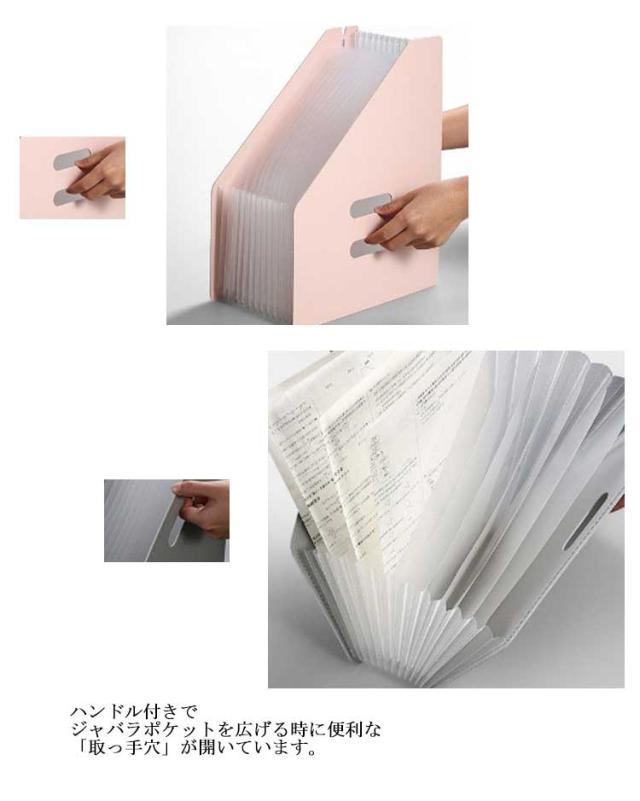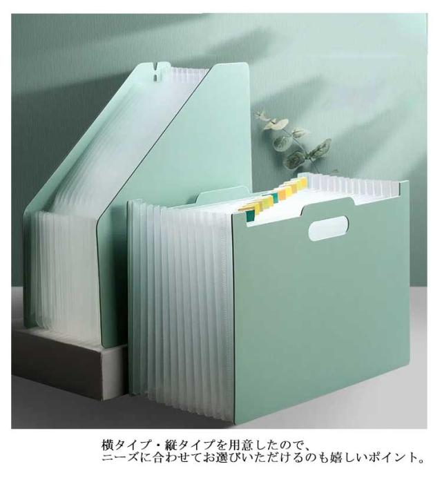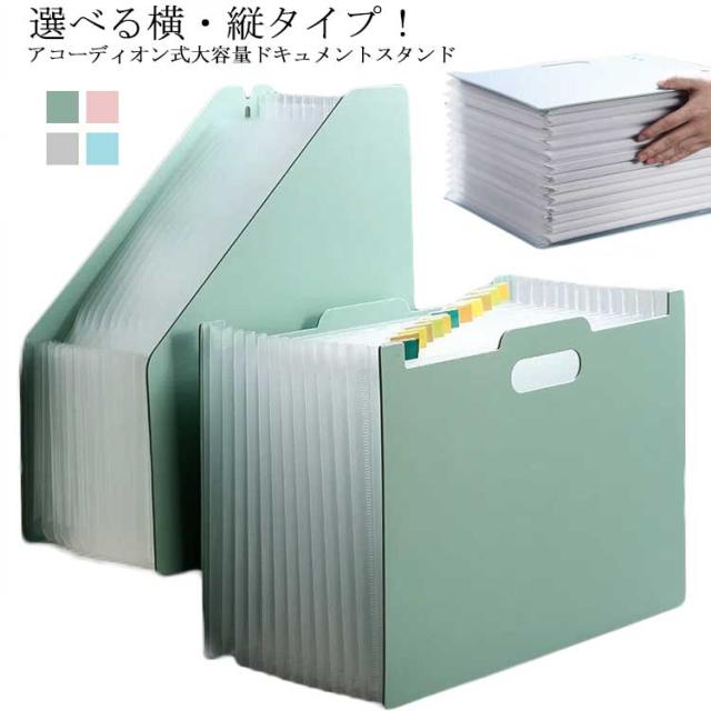 | 選べる横・縦タイプ!アコーディオン式大容量ドキュメントスタンド A4用紙が余裕で収納できるので、書類の仕分けにピッタリ! ハンドル付きでジャバラポケットを広げる時に便利な「取っ手穴」が開いています。 横タイプ・縦タイプを用意したので、ニーズに合わせてお選びいただけるのも嬉しいポイント。 防水のPP素材を採用するので、水濡れ心配もありません。 シンスルなシルエットなので、複数並べても見栄えが良く、統一感のある空間を演出。 | |