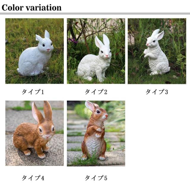 | うさぎの置物 ラビット選べる5タイプ。 リアルななかよしウサギ達のガーデンオーナメントです。 愛らしい表情と姿は心をほっと和ませてくれ、インテリアのアクセントにおすすめです。 ガーデニングでも、室内でもアクセントに、いかがですか。 | |