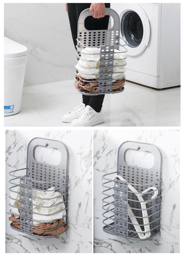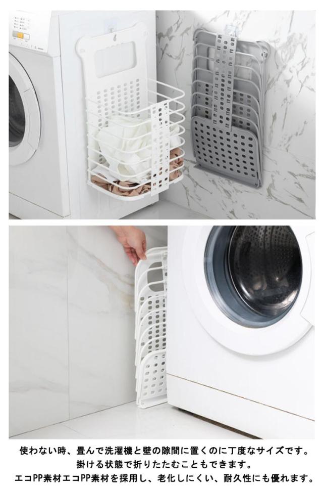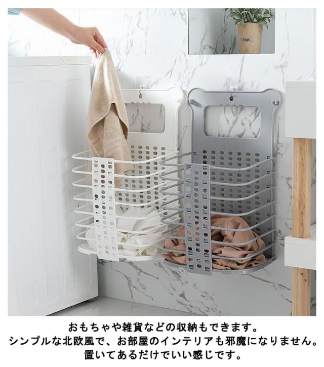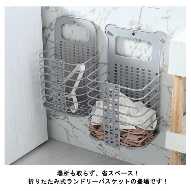 場所も取らず、省スペース!壁掛け ランドリーバスケット 送料無料 折りたたみ 洗濯かご 衣類 収納ボックス 洗濯ボックス 持ち運びやすい ランドリー バスケット 収納バスケット ランドリー収納 収納バスケット インテリア 雑貨 トイレ収納 フック付き