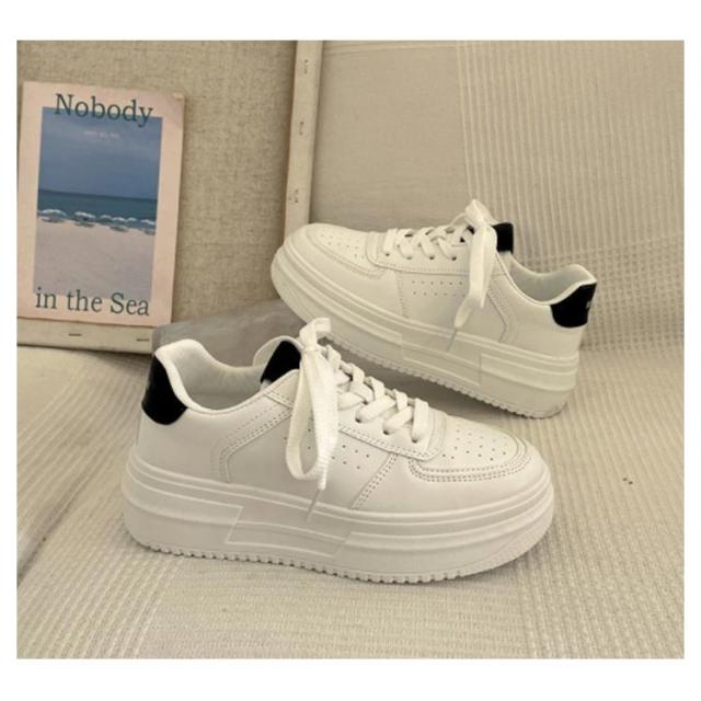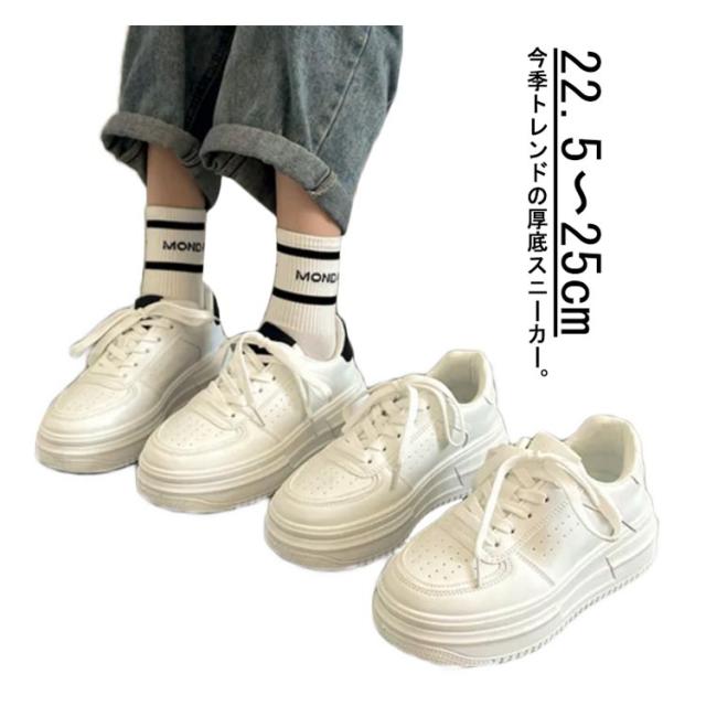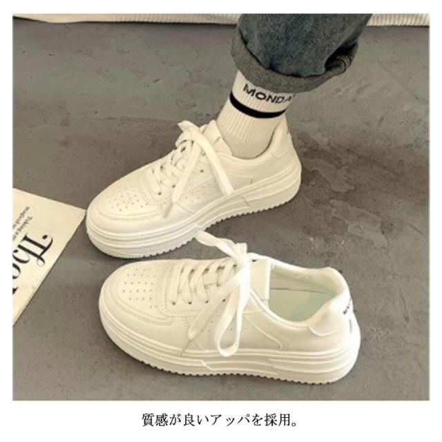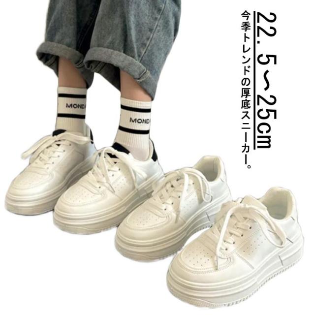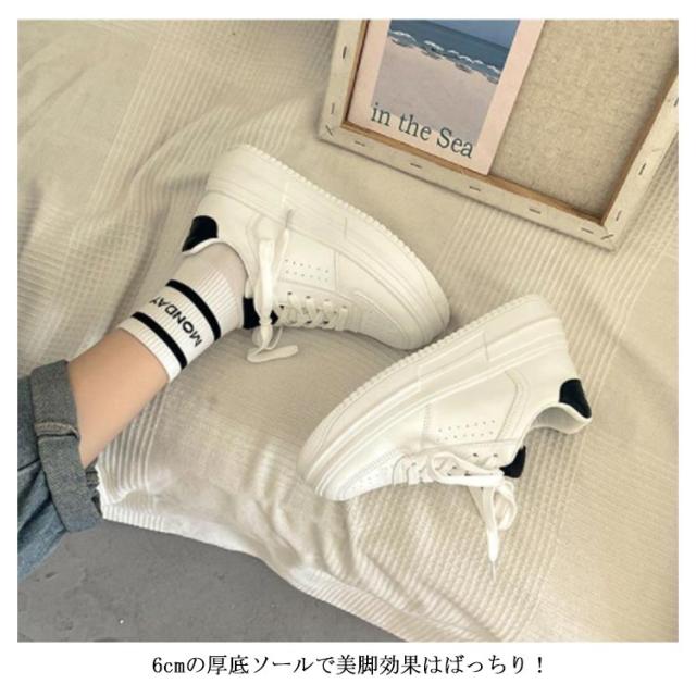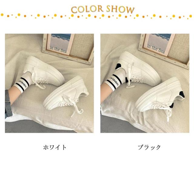 スニーカー レディース ホワイト ブラック 厚底 白 黒 靴 シューズ ローカット おしゃれ かわいい 通学 通勤 仕事 シンプル カジュアル レースアップ 秋 春 バイカラー 安定感のある厚底タイプ