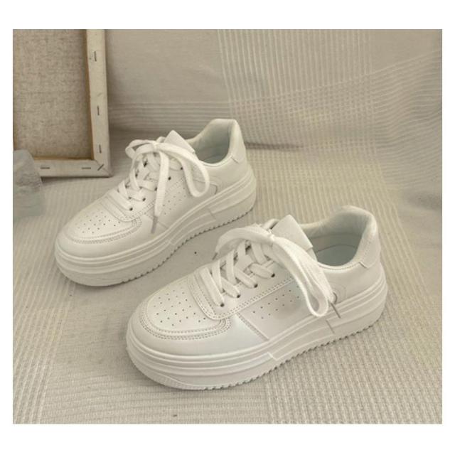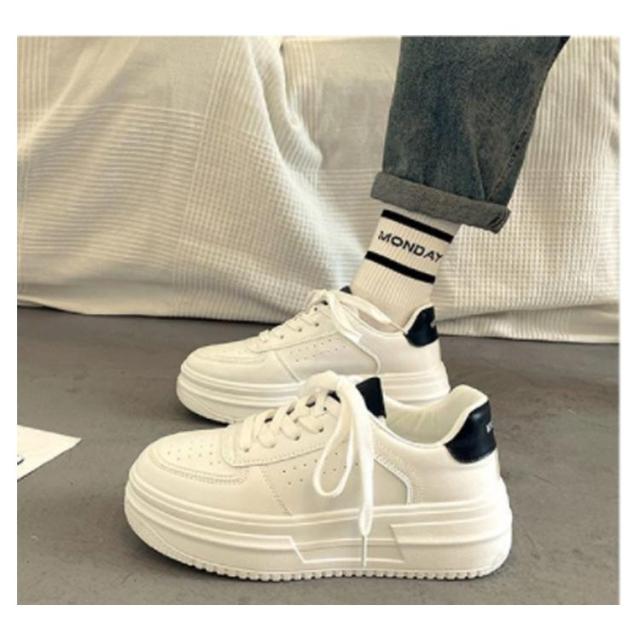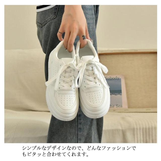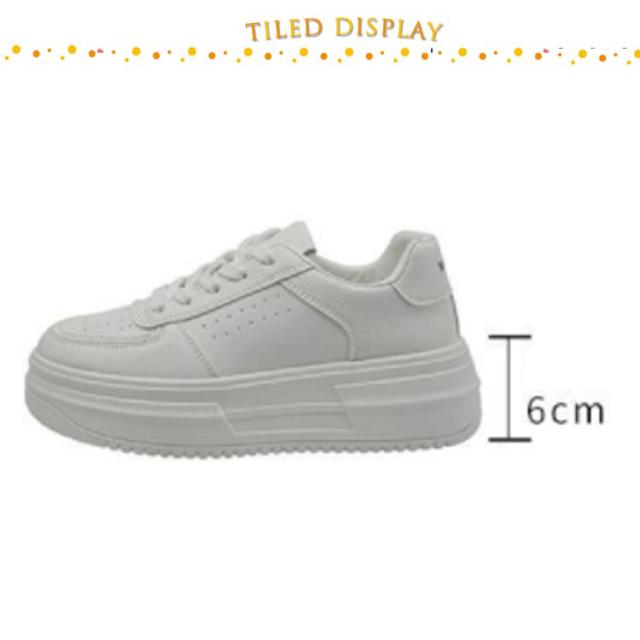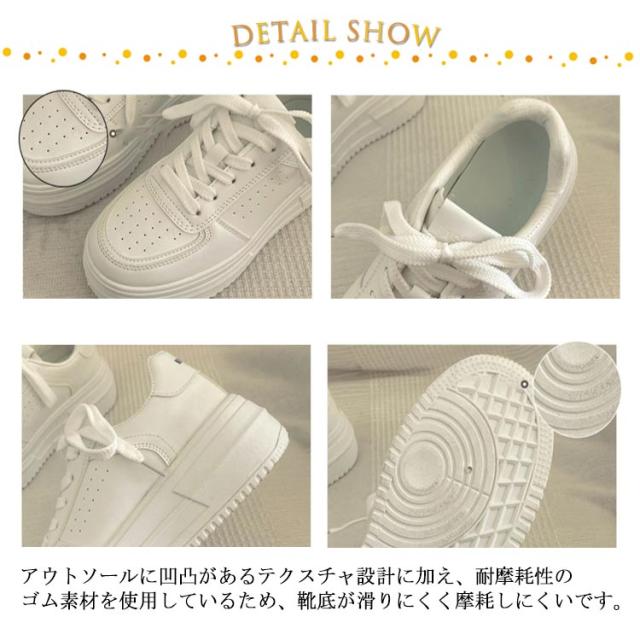 | 今季トレンドの厚底スニーカー。 質感が良いアッパを採用。 季節を問わず、素足でもサラッとした履き心地。 6cmの厚底ソールで美脚効果はばっちり! シンプルなデザインなので、どんなファッションでもピタッと合わせてくれます。 アウトソールに凹凸があるテクスチャ設計に加え、耐摩耗性のゴム素材を使用しているため、靴底が滑りにくく摩耗しにくいです。 | |