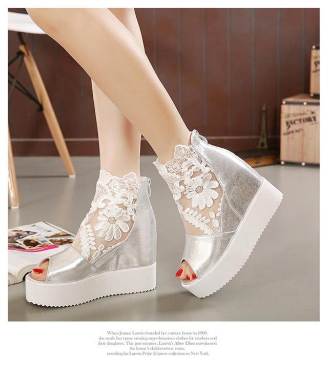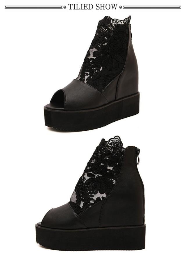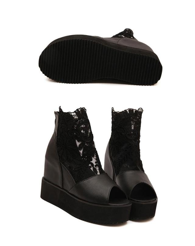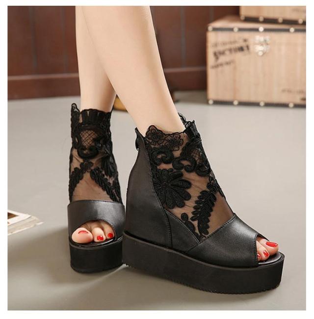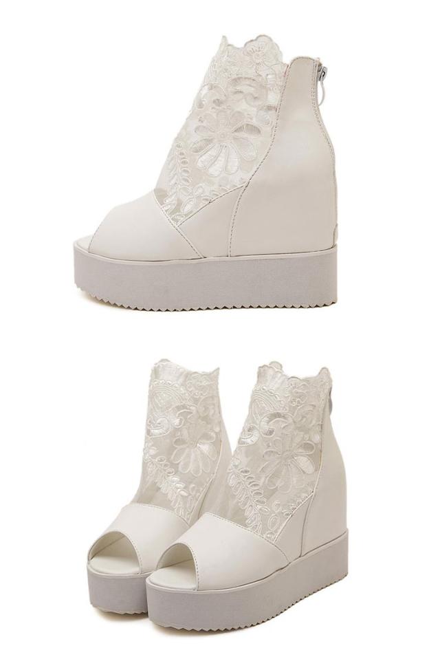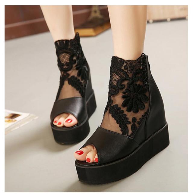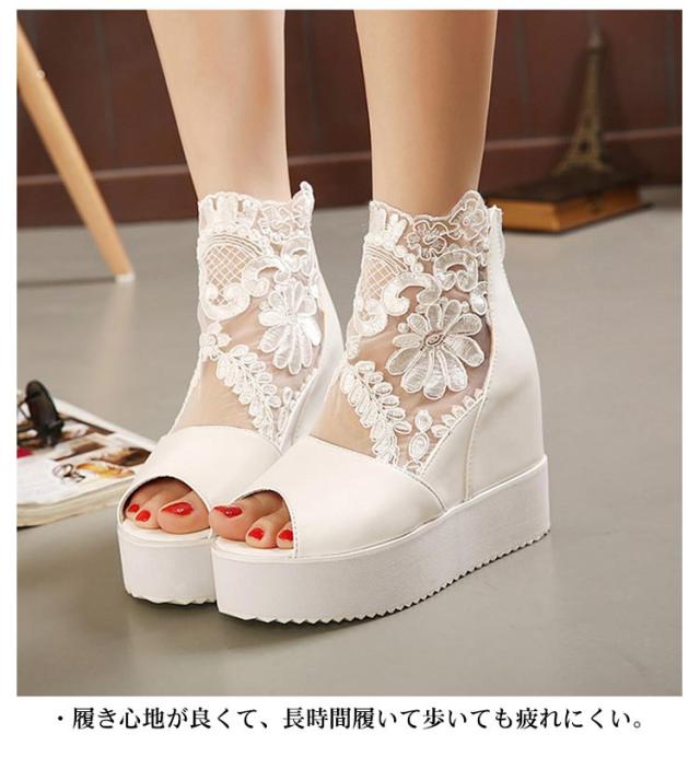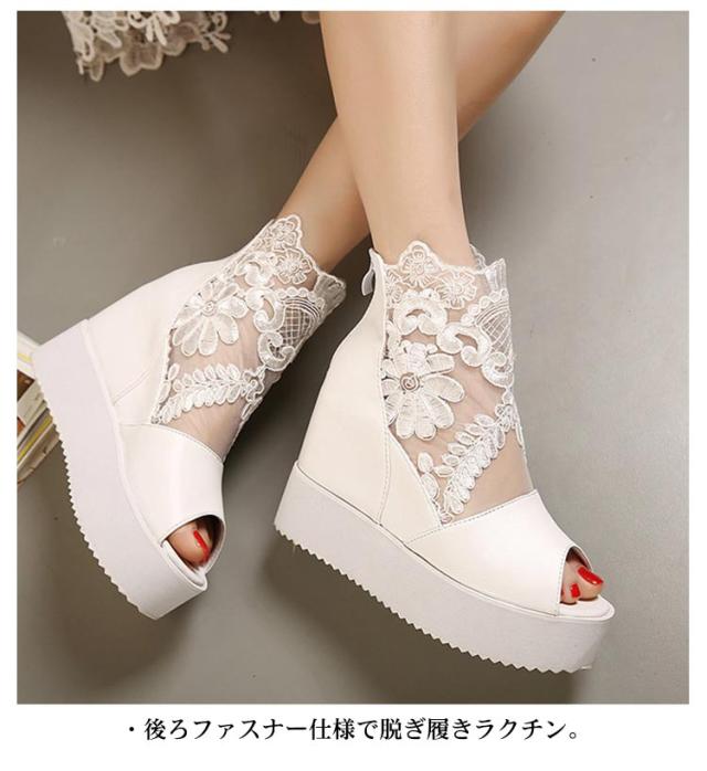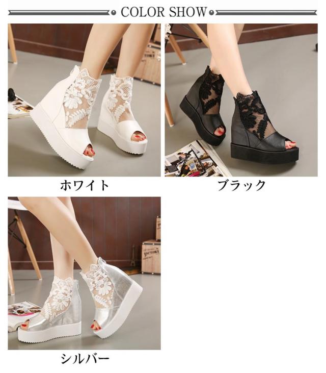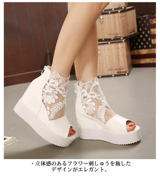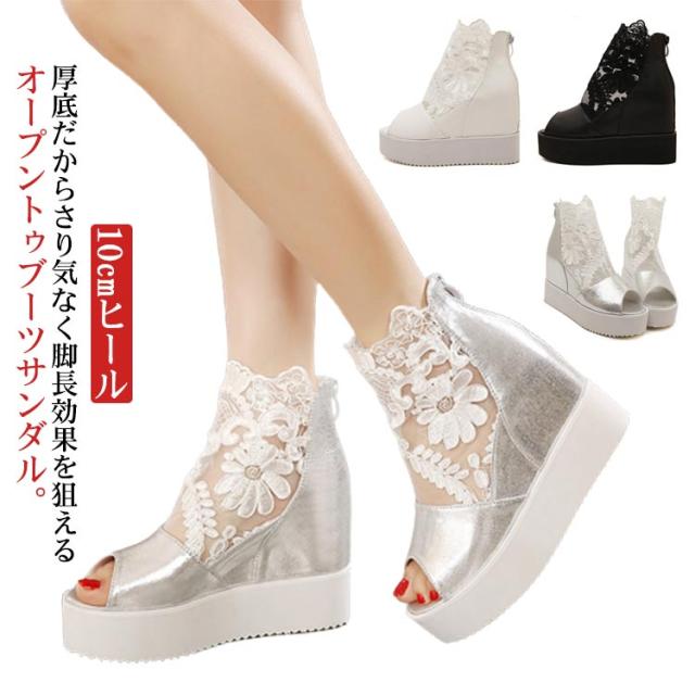 サマーブーツ ブーツサンダル 厚底サンダル レディース レース オープントゥ 花柄 フラワーレース 10cmヒール バックファスナー カジュアル おしゃれ きれいめ 全3色