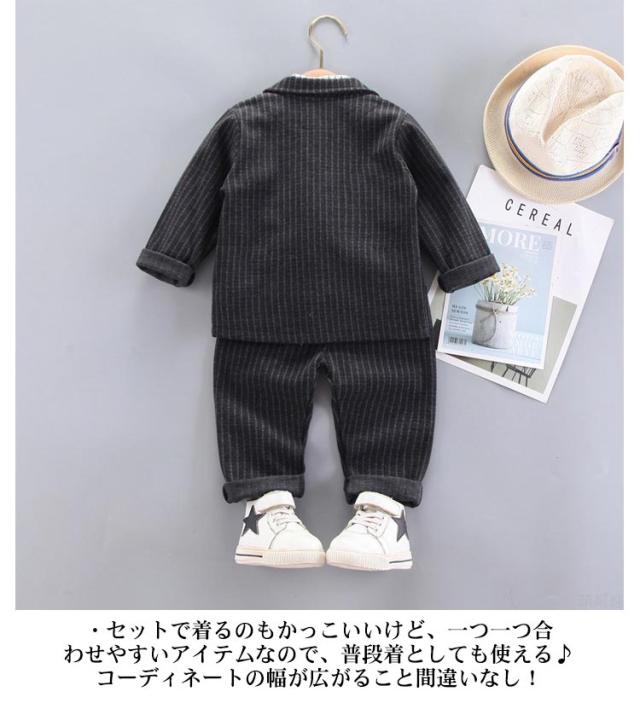 ベビー服 フォーマル スーツ キッズ 上下セット 5点セット ネクタイ付き ジャケット+ベスト+シャツ+パンツ+ネクタイ 赤ちゃん 男の子 男児 ストライプ柄 発表会 入学式 結婚式 おしゃれ カジュアル 全3色