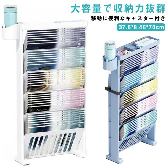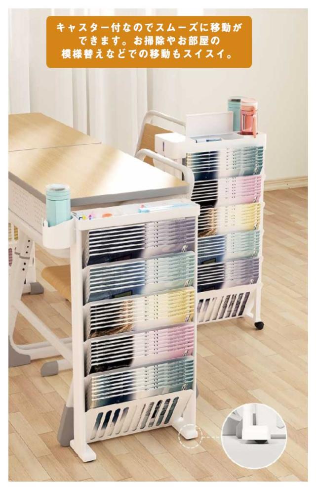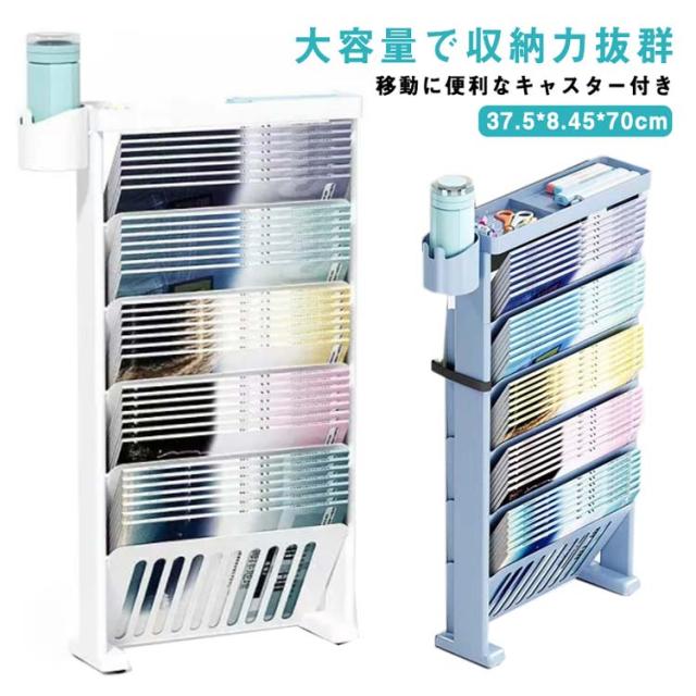 本立て ブックスタンド キャスター付き 本棚 スリム デスクサイド収納 絵本棚 卓上収納 デスク整理 学校机用品 大容量 教科書 書類 文具 水筒 ペットボトルなどが収納 斜め棚 仕切り 本収納 卓上収納 水筒 収納 取り出しやすい