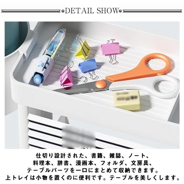 | 【大容量で収納力抜群】 仕切り設計された、書籍、雑誌、ノート、料理本、辞書、漫画本、フォルダ、文房具、テーブルパーツを一口にまとめて収納できます。上トレイは小物を置くのに便利です。テーブルを美しくします。 「見せる収納」として考えれられる方にはお勧めです。 【移動に便利なキャスター付き】 キャスター付なのでスムーズに移動ができます。お掃除やお部屋の模様替えなどでの移動もスイスイ。 | |