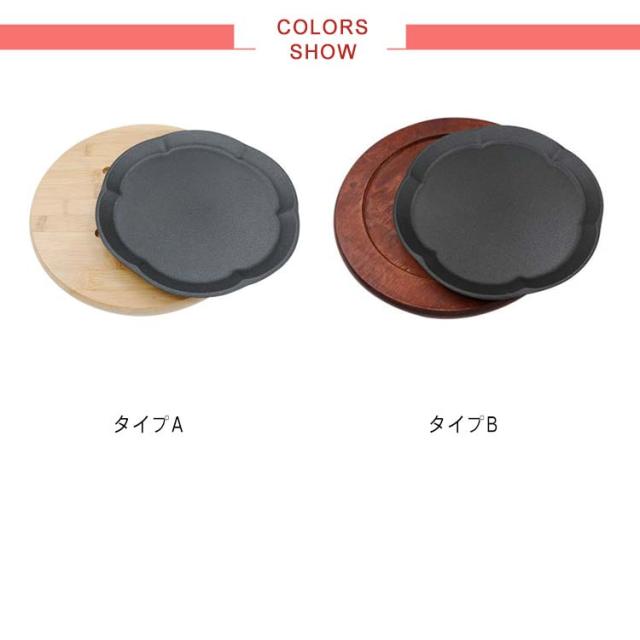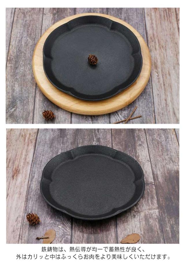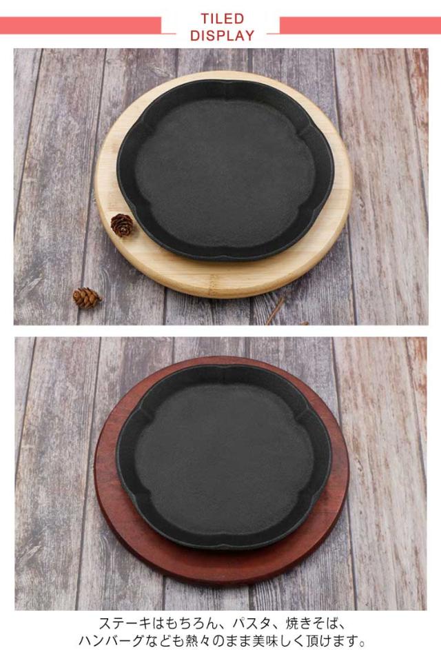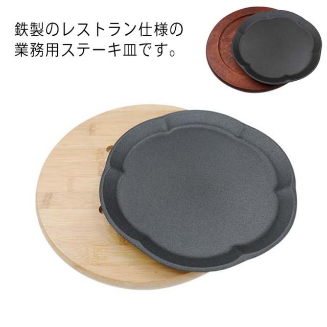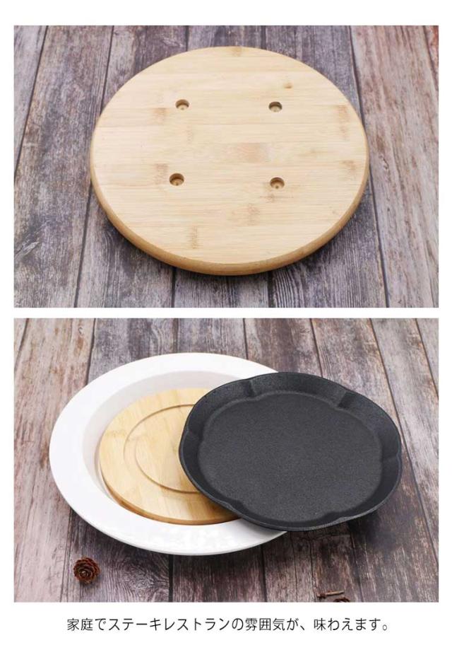 ステーキ皿 23cm 円形 鉄板 26cm 丸 電磁調理器IH対応 ガス火 大判型 大判型 丸 木製プレート 敷板 ハンバーグ パスタ 焼きそば 家庭用 業務用