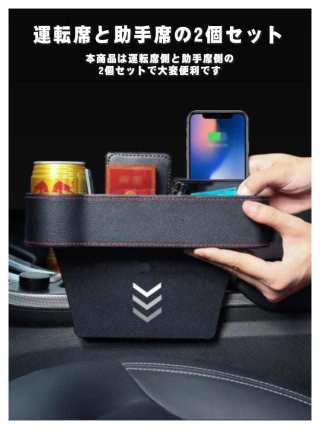 車用 サイド収納ボックス 2個入り 車載 隙間 収納ボックス シートポケット ドリンクホルダー 運転席 助手席 コンソール ボックス 車用 収納ケース カップホルダー スマホホルダー 車用品 隙間収納 小物入れ 多機能 車用 収納ボックス PUレザー カー用品