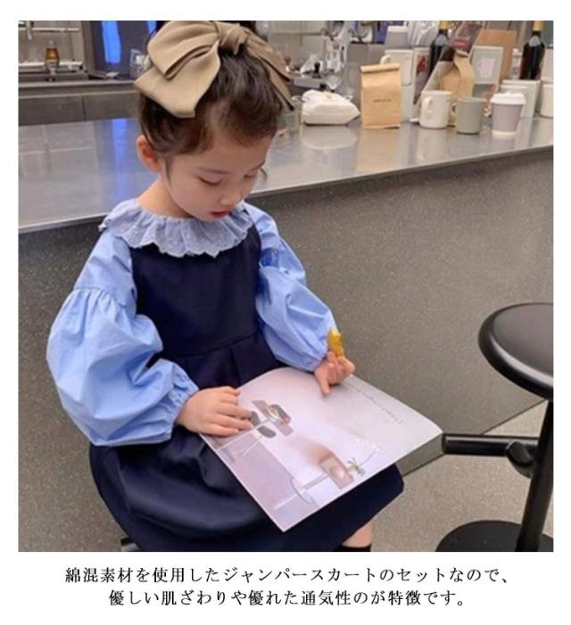 キッズ セットアップ 女の子 ジャンパースカート ブラウス 2点セット シャツ 春 秋 おしゃれ カジュアル 韓国子供服 ベビー服 サロペットスカート トップス スカートセット フォーマル 送料無料